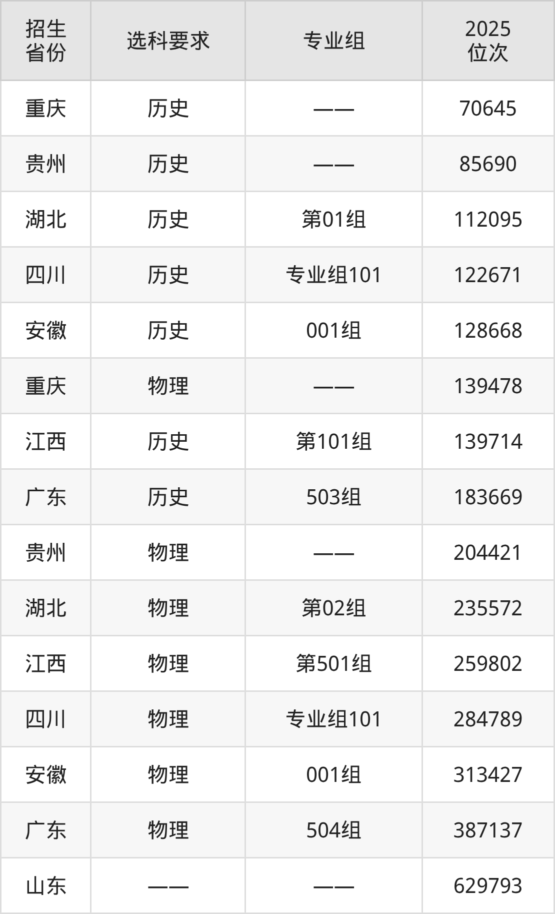 重慶護理職業(yè)學(xué)院2025年在全國各省的位次差異較大,最高位次是70645位(重慶歷史類)、最低位次是629793位(山東)。各省具體位次請看下圖: