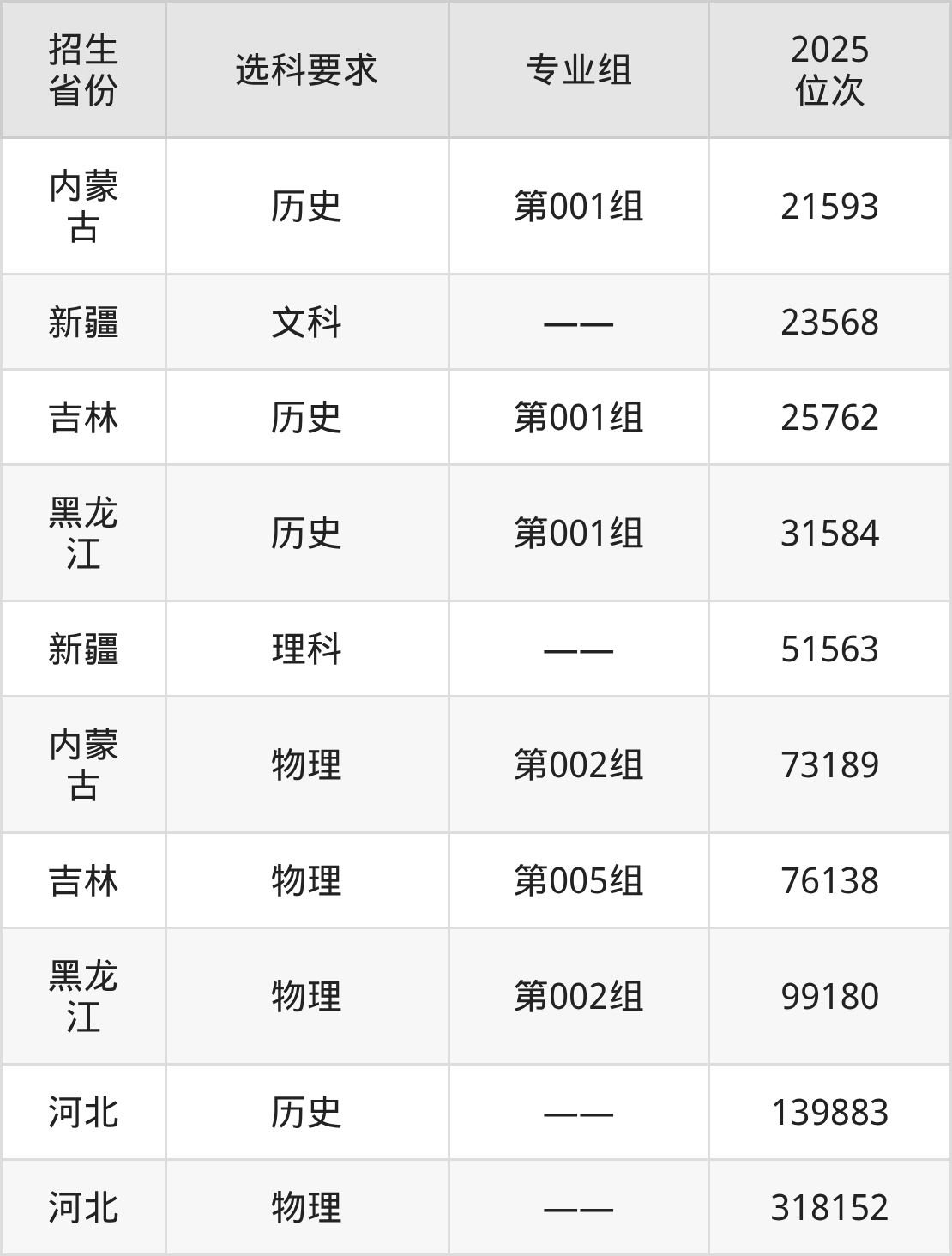 四平職業(yè)大學(xué)2025年在全國(guó)各省的位次差異較大,最高位次是21593位(內(nèi)蒙古歷史類)、最低位次是318152位(河北物理類)。各省具體位次請(qǐng)看下圖: