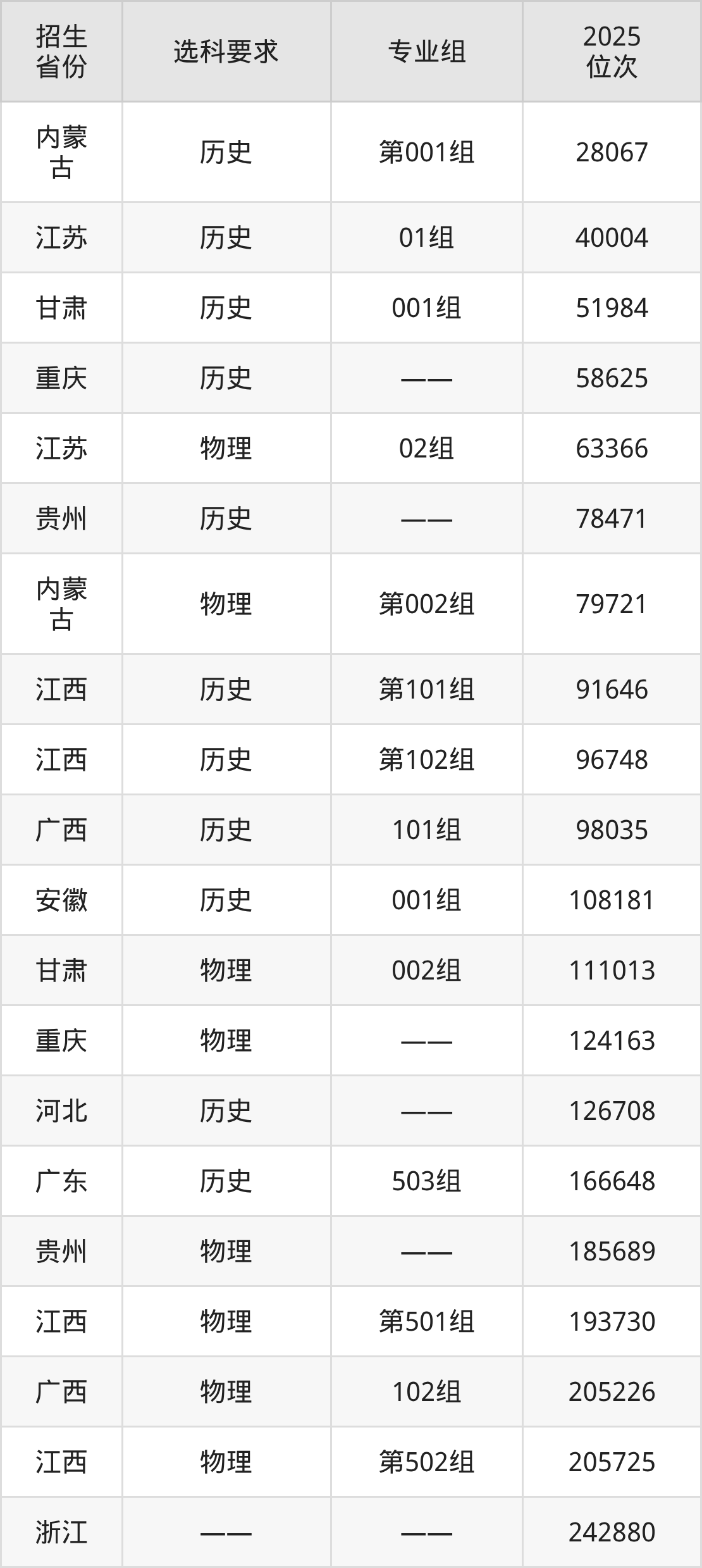 河南測繪職業(yè)學(xué)院2025年在全國各省的位次差異較大,最高位次是28067位(內(nèi)蒙古歷史類)、最低位次是487458位(山東)。各省具體位次請看下圖: