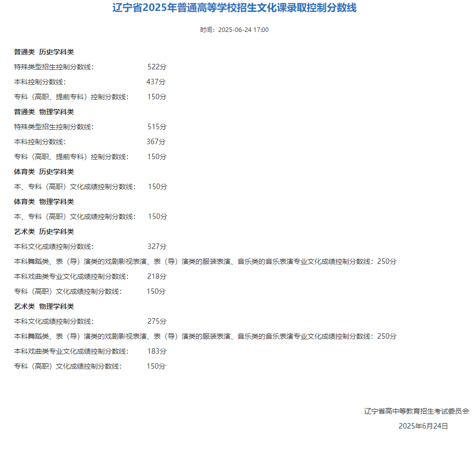 一、2025年遼寧高考錄取分?jǐn)?shù)線