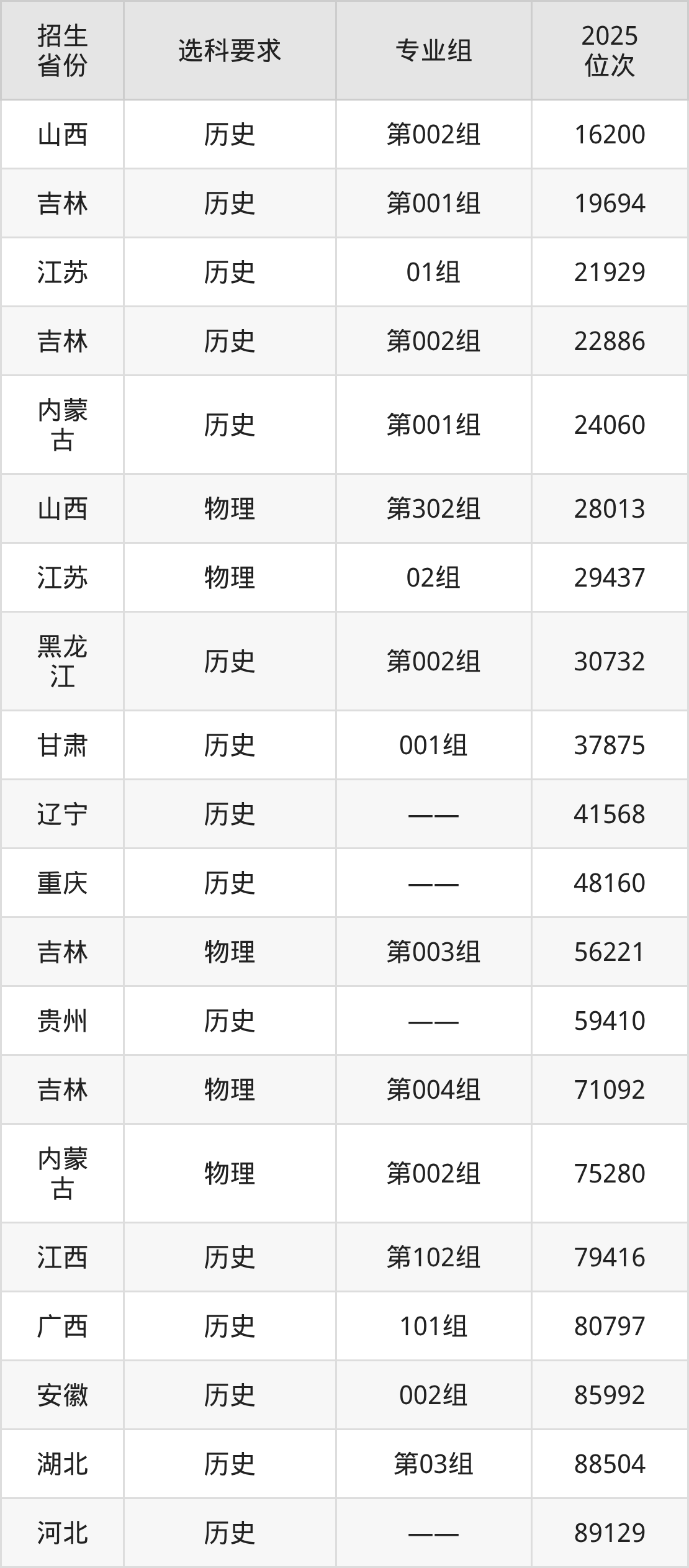 青島港灣職業(yè)技術(shù)學(xué)院2025年在全國各省的位次差異較大,最高位次是16200位(山西歷史類)、最低位次是665563位(山東)。各省具體位次請(qǐng)看下圖: