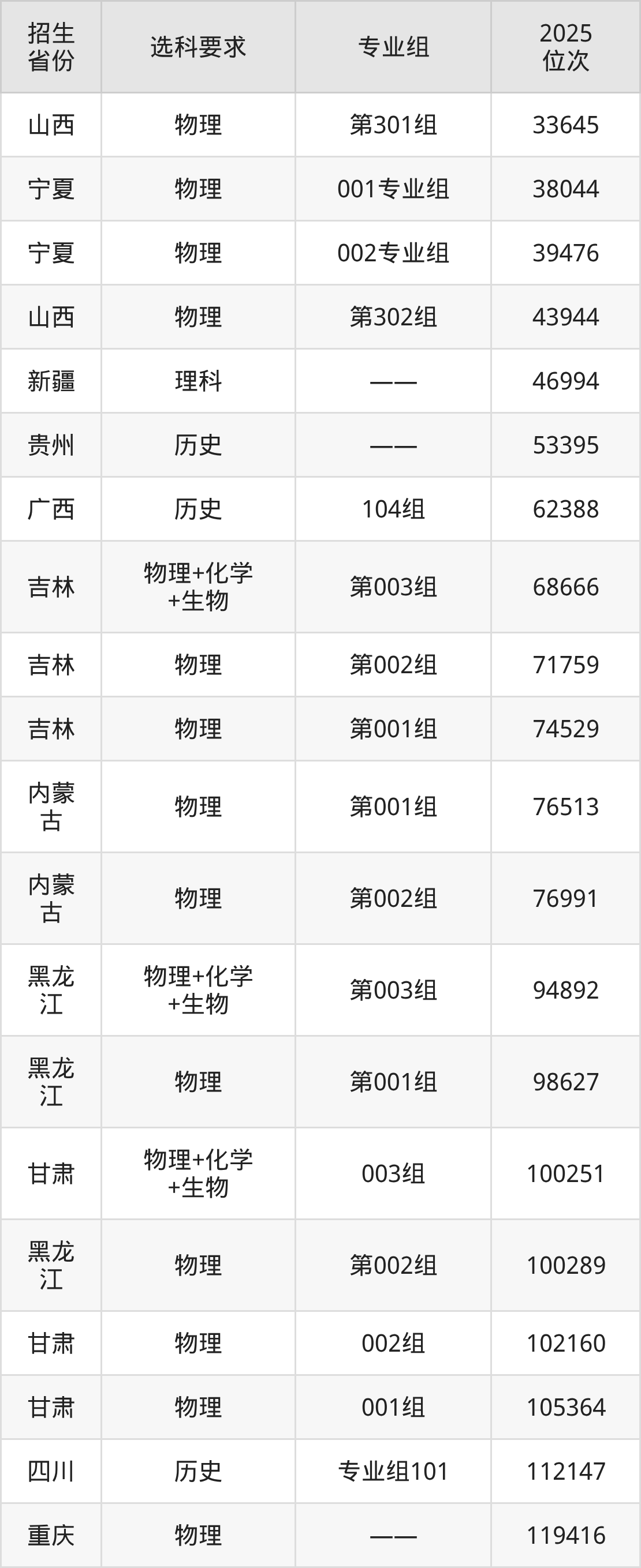 黔南民族醫(yī)學(xué)高等??茖W(xué)校2025年在全國(guó)各省的位次差異較大,最高位次是33645位(山西物理類)、最低位次是466925位(山東)。各省具體位次請(qǐng)看下圖: