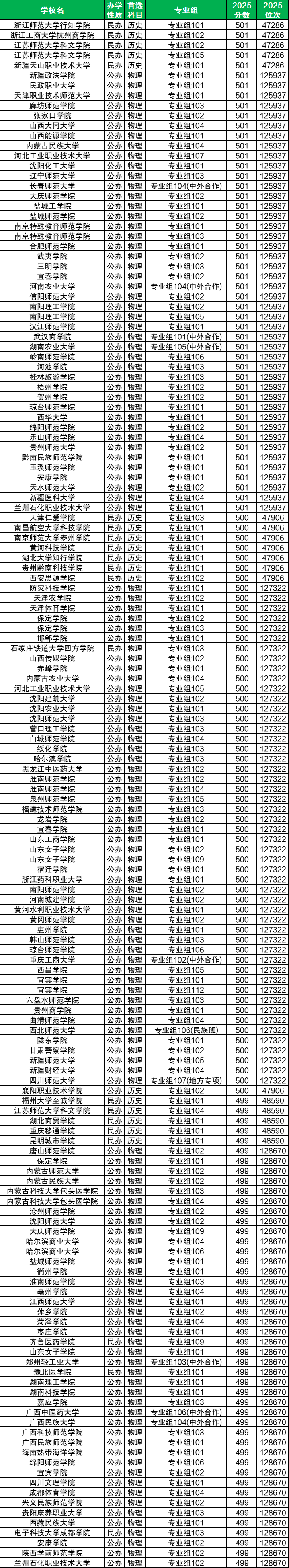 一、2025年500分左右大學(xué)一覽表