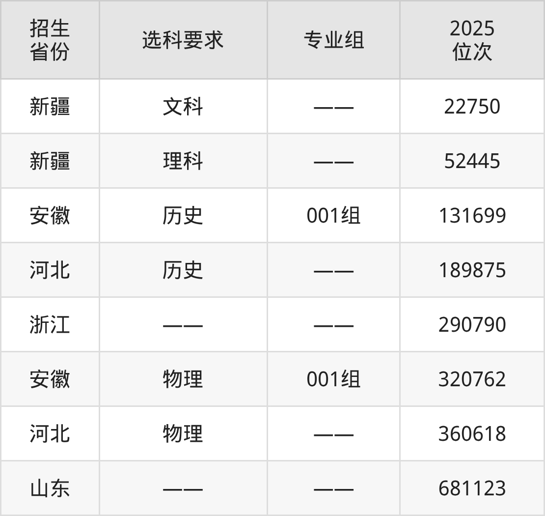 濱州科技職業(yè)學(xué)院2025年在全國各省的位次差異較大,最高位次是22750位(新疆文科)、最低位次是681123位(山東)。各省具體位次請(qǐng)看下圖: