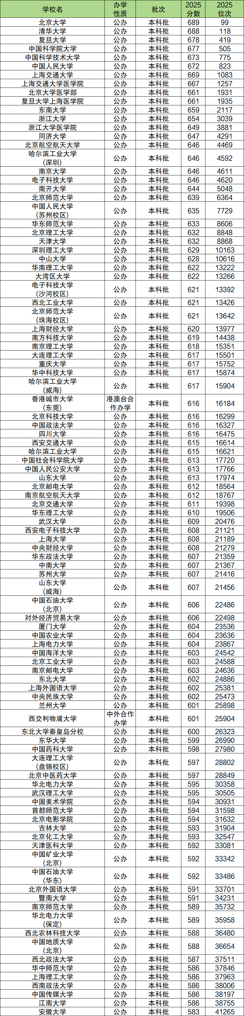 二、本科線各大學(xué)錄取分?jǐn)?shù)線
