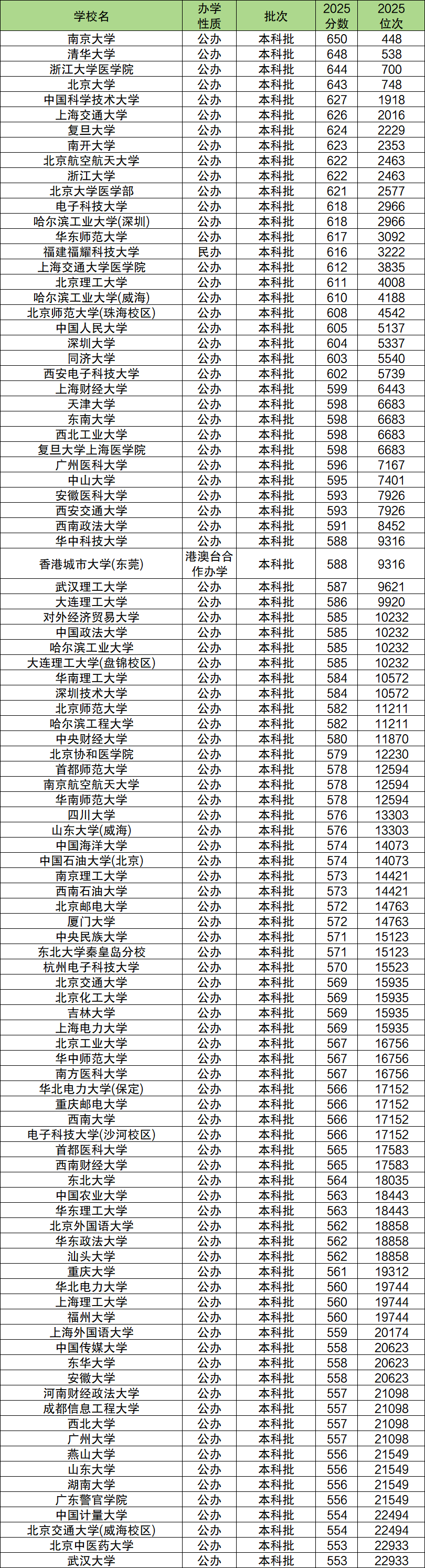 二、本科線各大學(xué)錄取分數(shù)線