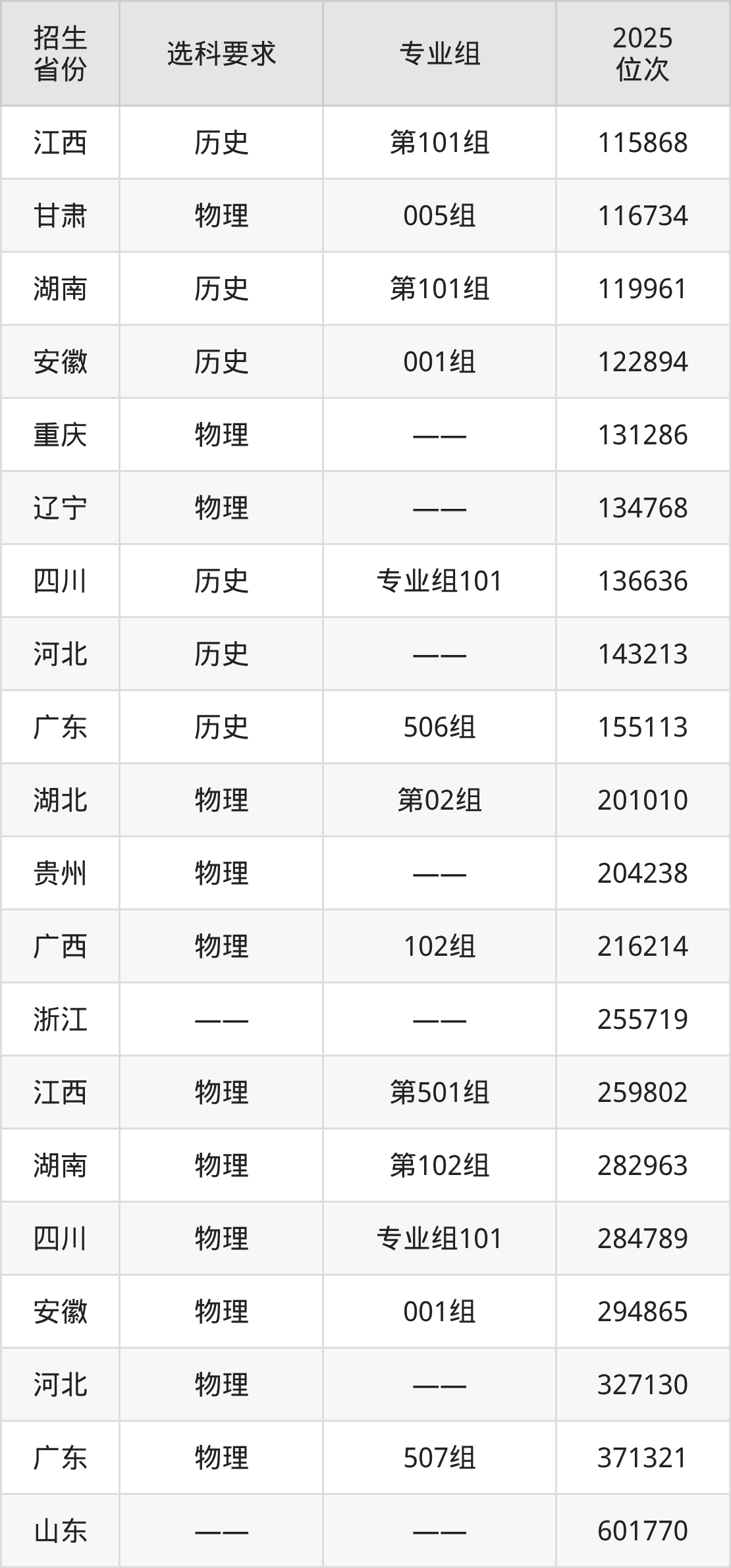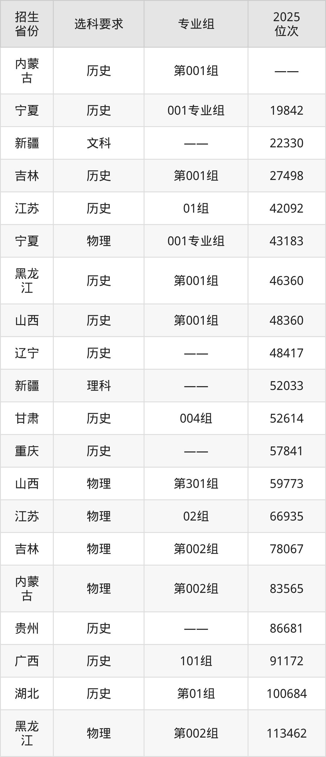 海南職業(yè)技術(shù)學(xué)院2025年在全國各省的位次差異較大,最高位次是19842位(寧夏歷史類)、最低位次是601770位(山東)。各省具體位次請看下圖: