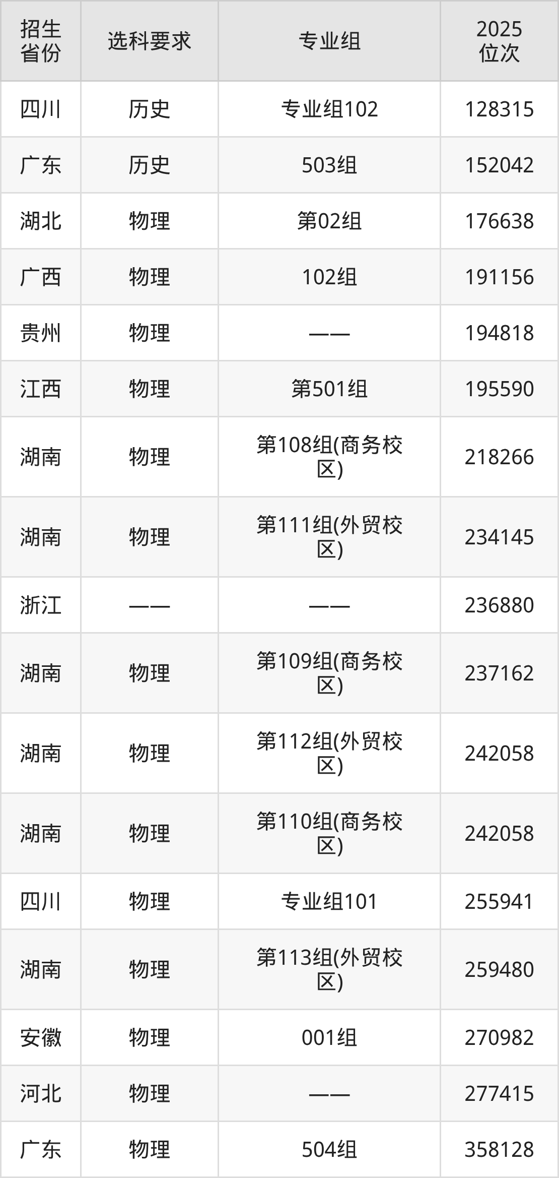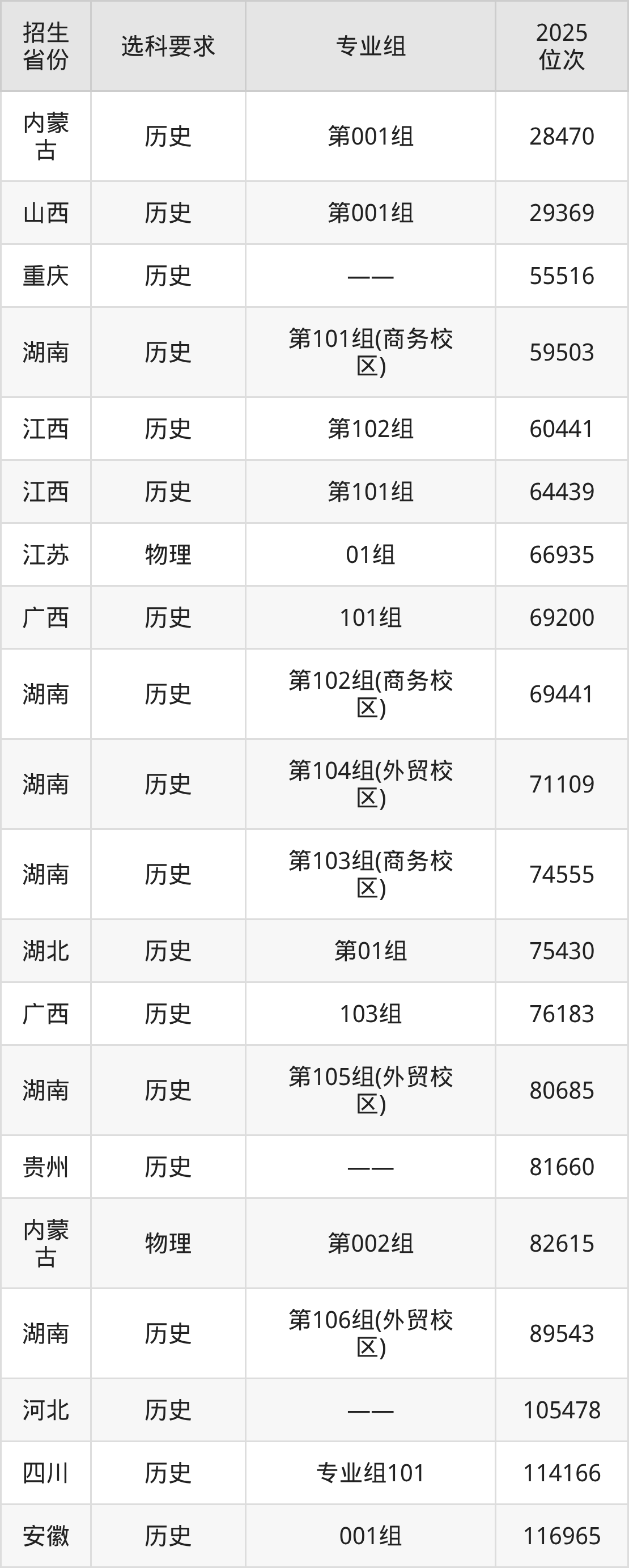 六、湖南商務(wù)職業(yè)技術(shù)學(xué)院各省最低錄取位次