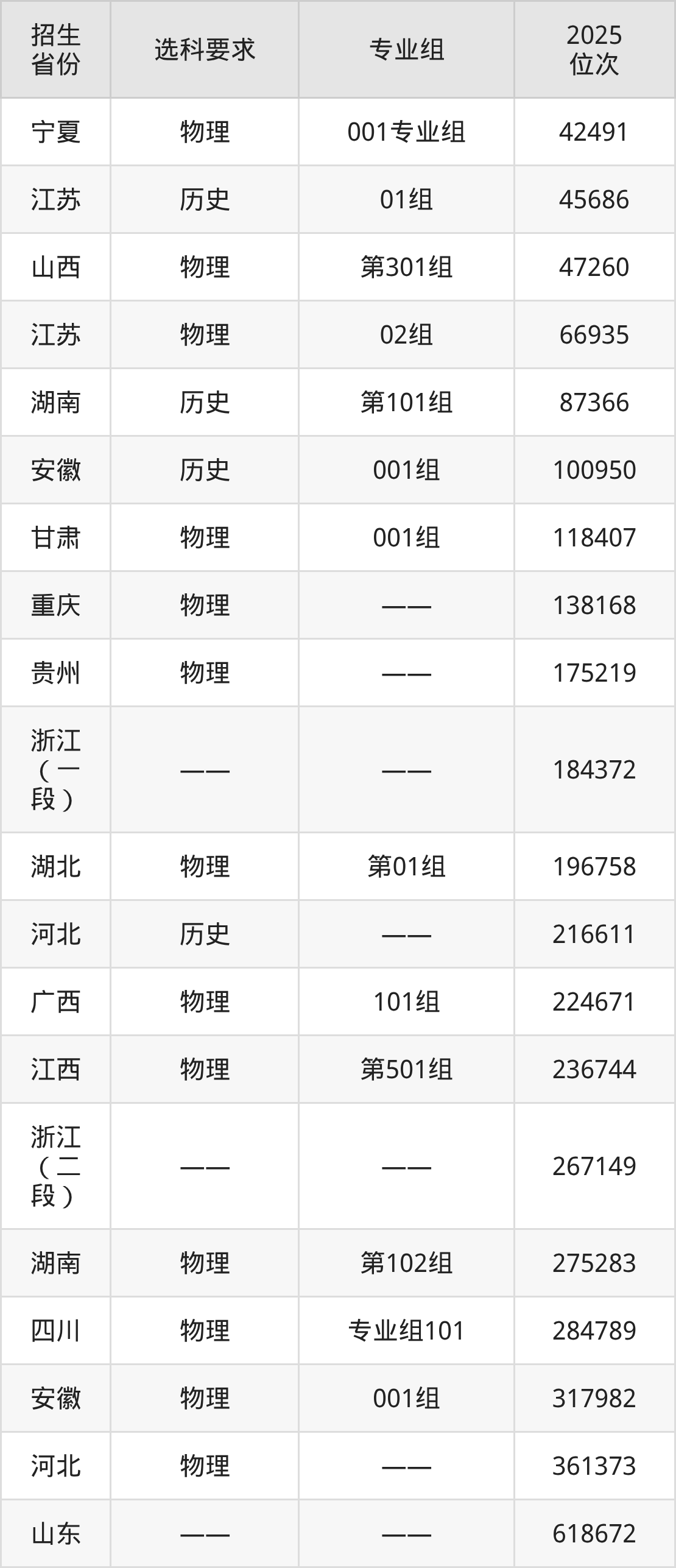 硅湖職業(yè)技術(shù)學(xué)院2025年在全國各省的位次差異較大,最高位次是42491位(寧夏物理類)、最低位次是618672位(山東)。各省具體位次請看下圖: