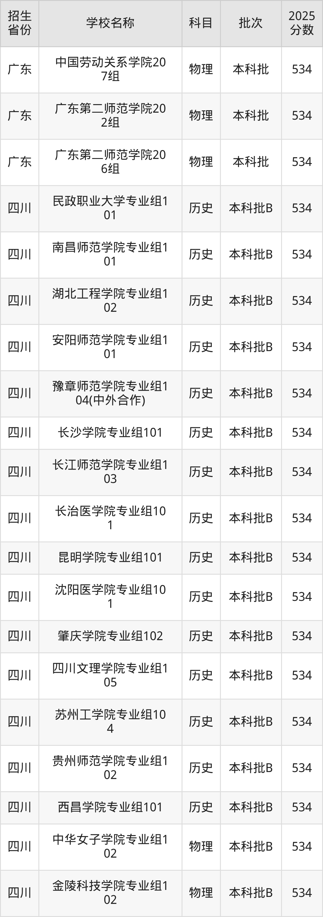 二、各省534分的二本公辦大學(xué)名單