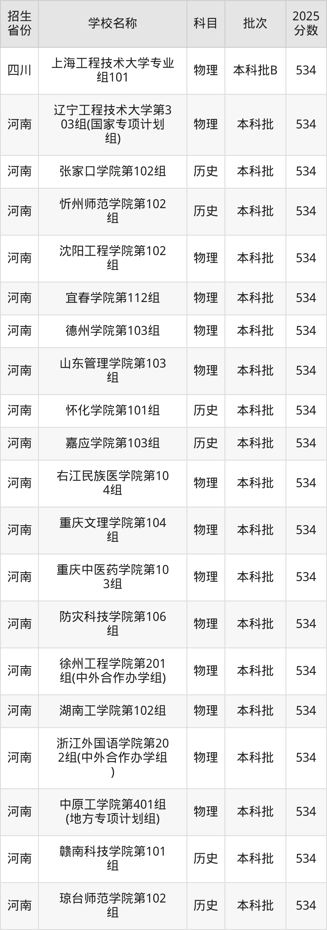 河南省歷史組分?jǐn)?shù)線是534分的二本公辦大學(xué)有:張家口學(xué)院、忻州師范學(xué)院、懷化學(xué)院、嘉應(yīng)學(xué)院、贛南科技學(xué)院、瓊臺師范學(xué)院。
