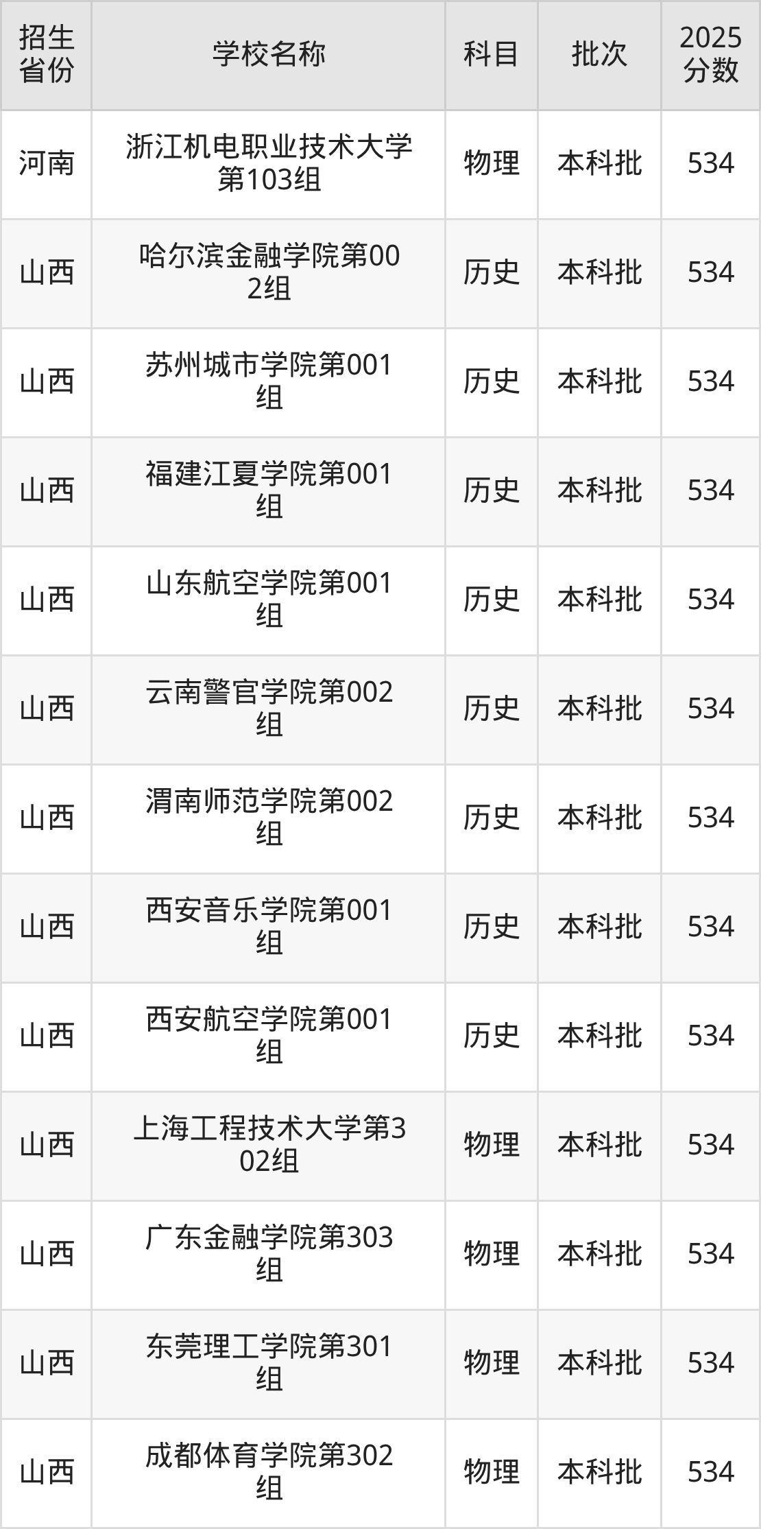 山西省歷史組分?jǐn)?shù)線是534分的二本公辦大學(xué)有:哈爾濱金融學(xué)院、蘇州城市學(xué)院、福建江夏學(xué)院、山東航空學(xué)院、云南警官學(xué)院、渭南師范學(xué)院、西安音樂學(xué)院、西安航空學(xué)院。