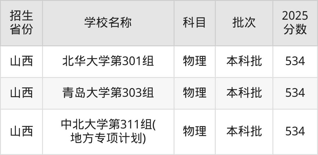 山西省物理組分數(shù)線是534分的文科大學(xué)有:華北理工大學(xué)、延邊大學(xué)、北華大學(xué)、青島大學(xué)、中北大學(xué)。