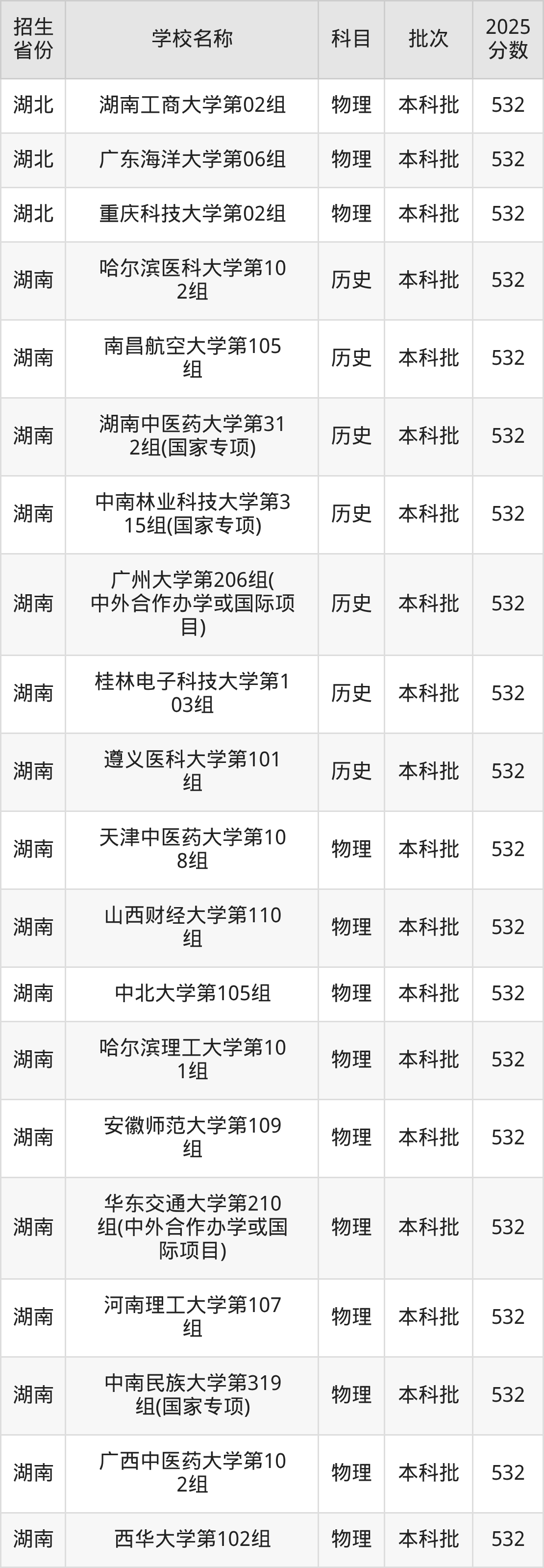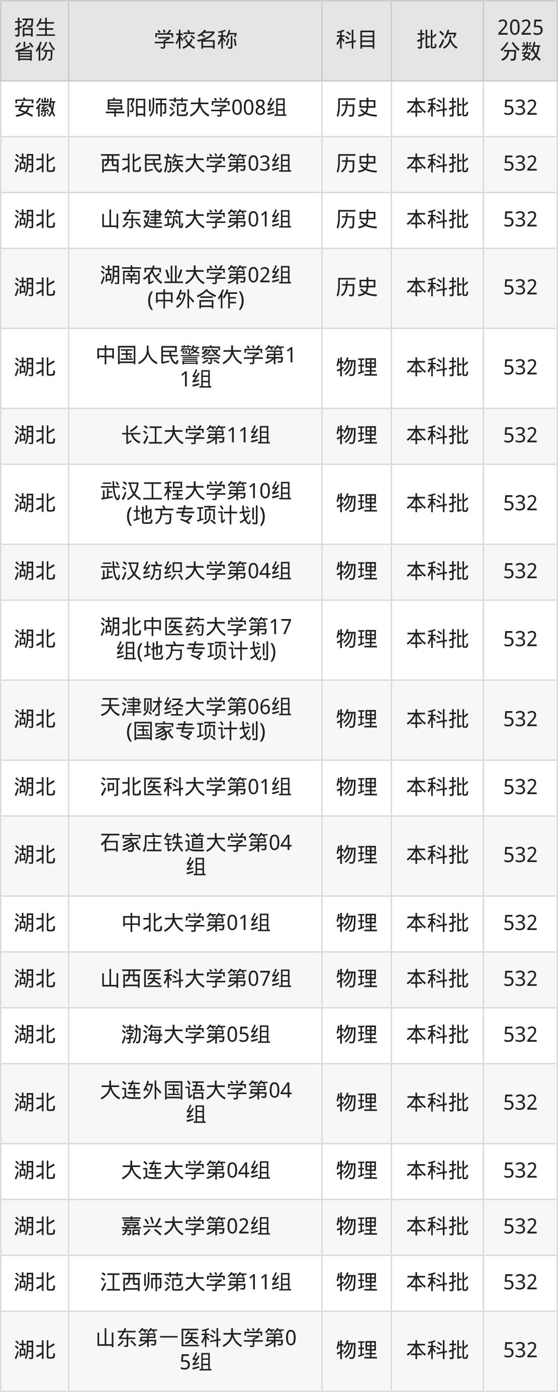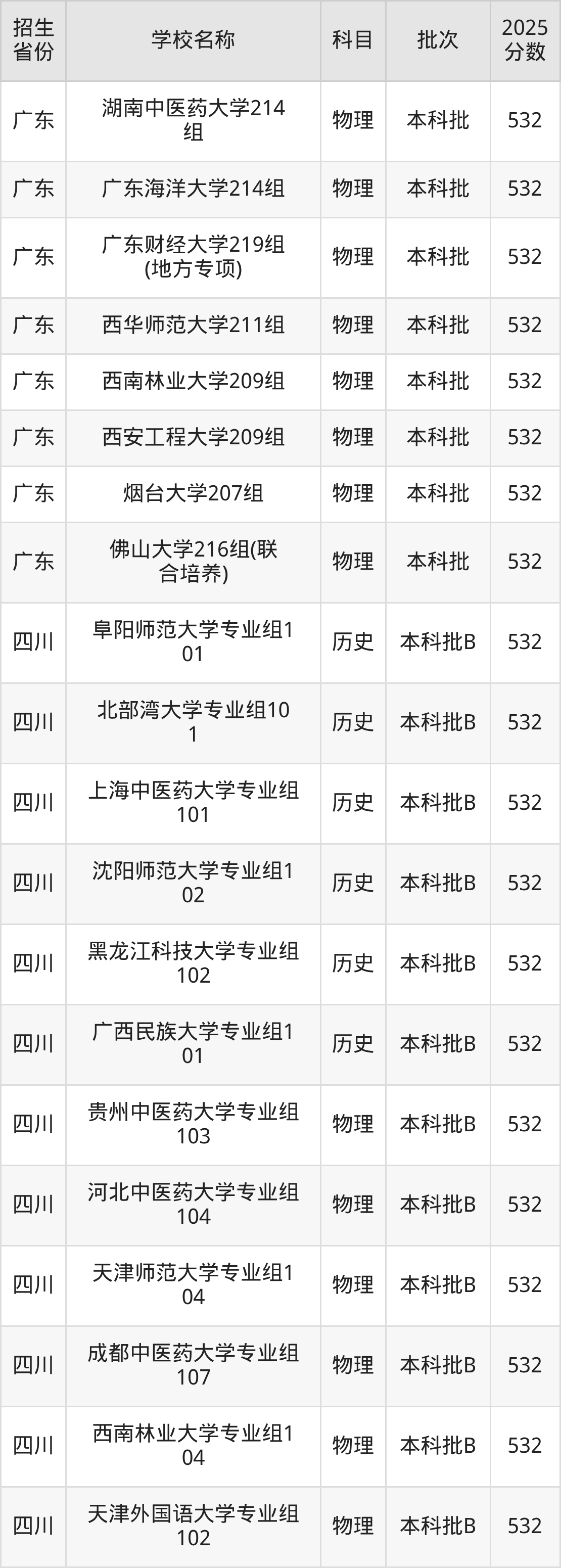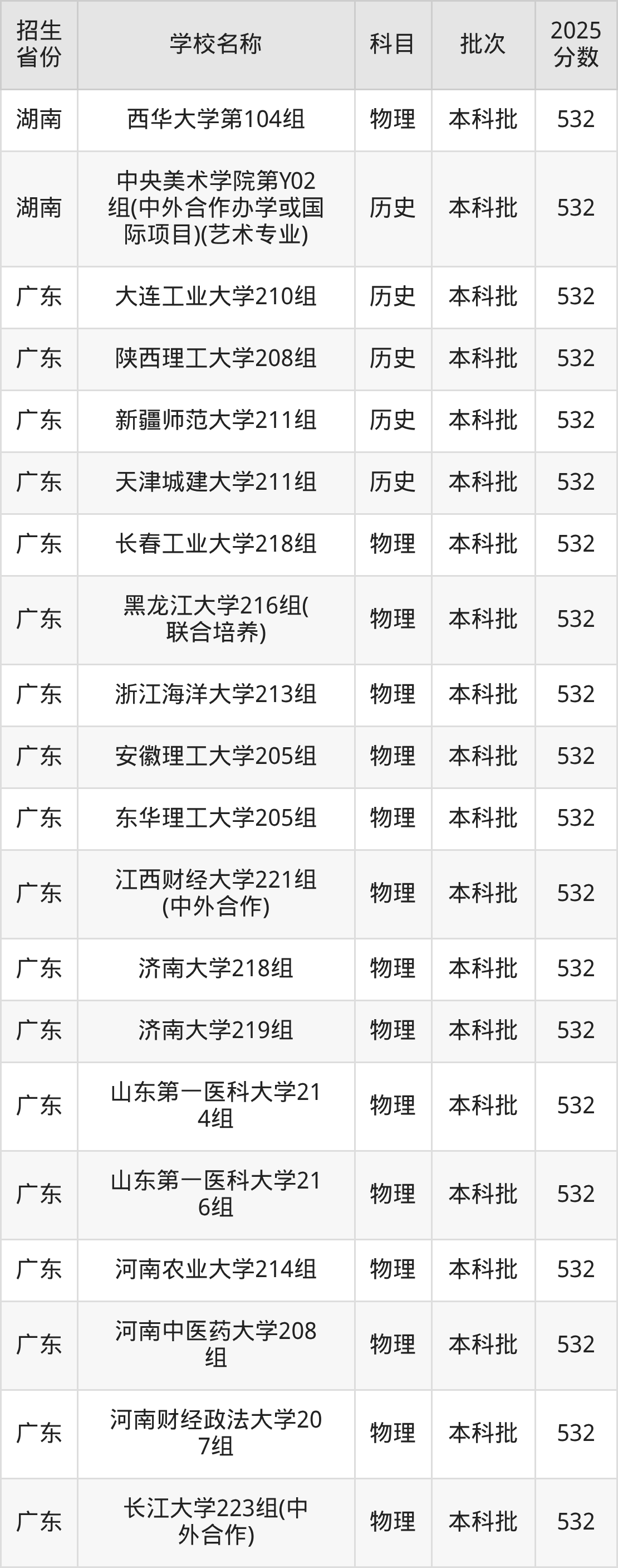 篩選全國各省2025年錄取分?jǐn)?shù)線為532分的一本大學(xué)如下: