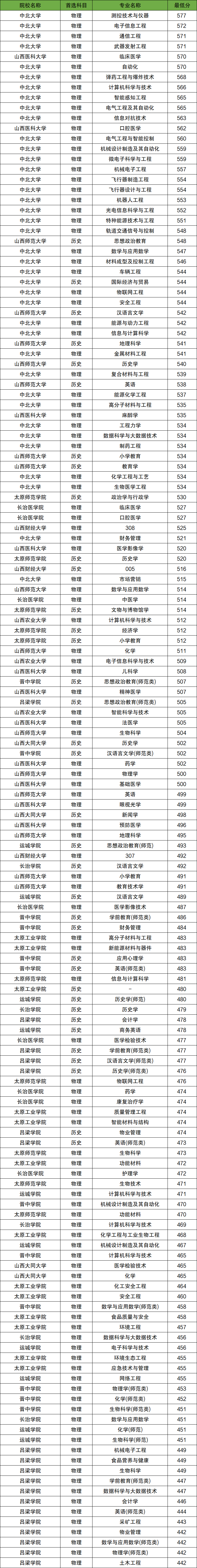 以山西師范大學(xué)為例,物理類各個專業(yè)最低分?jǐn)?shù)線如下: