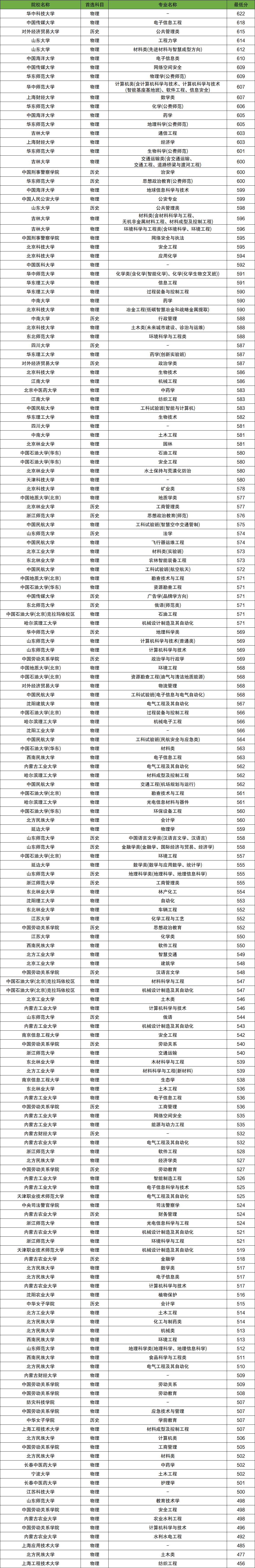 以內(nèi)蒙古工業(yè)大學(xué)為例,物理類(lèi)各個(gè)專(zhuān)業(yè)最低分?jǐn)?shù)線如下: