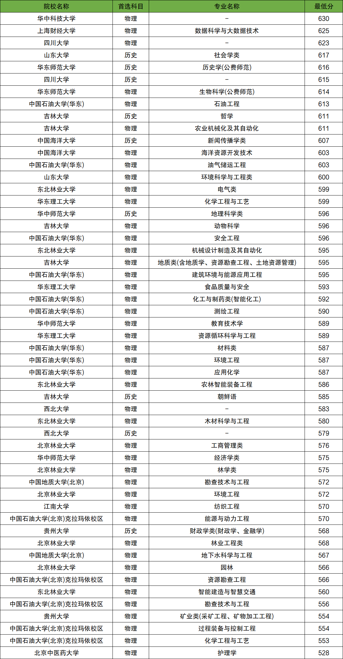 以東北林業(yè)大學(xué)為例,物理類各個(gè)專業(yè)最低分?jǐn)?shù)線如下: