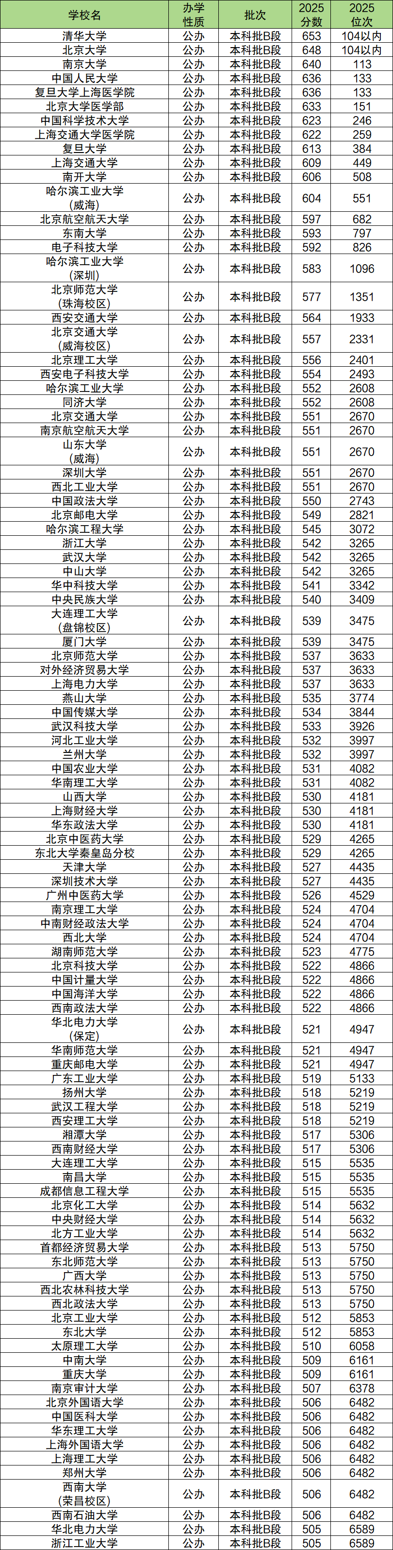 二、本科線各大學(xué)錄取分?jǐn)?shù)線