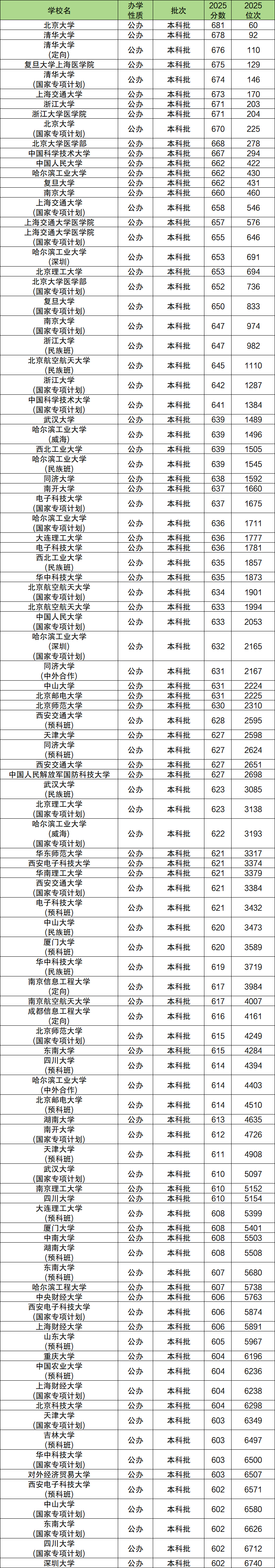 二、本科線各大學(xué)錄取分?jǐn)?shù)線