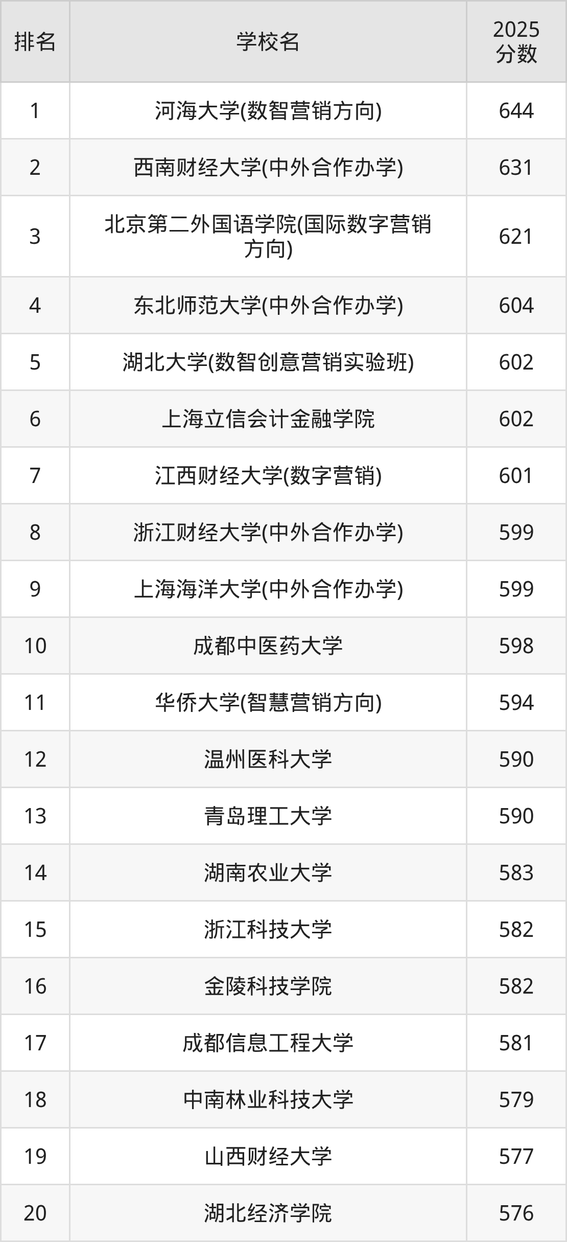 二、市場營銷專業(yè)大學(xué)排名及分?jǐn)?shù)線
