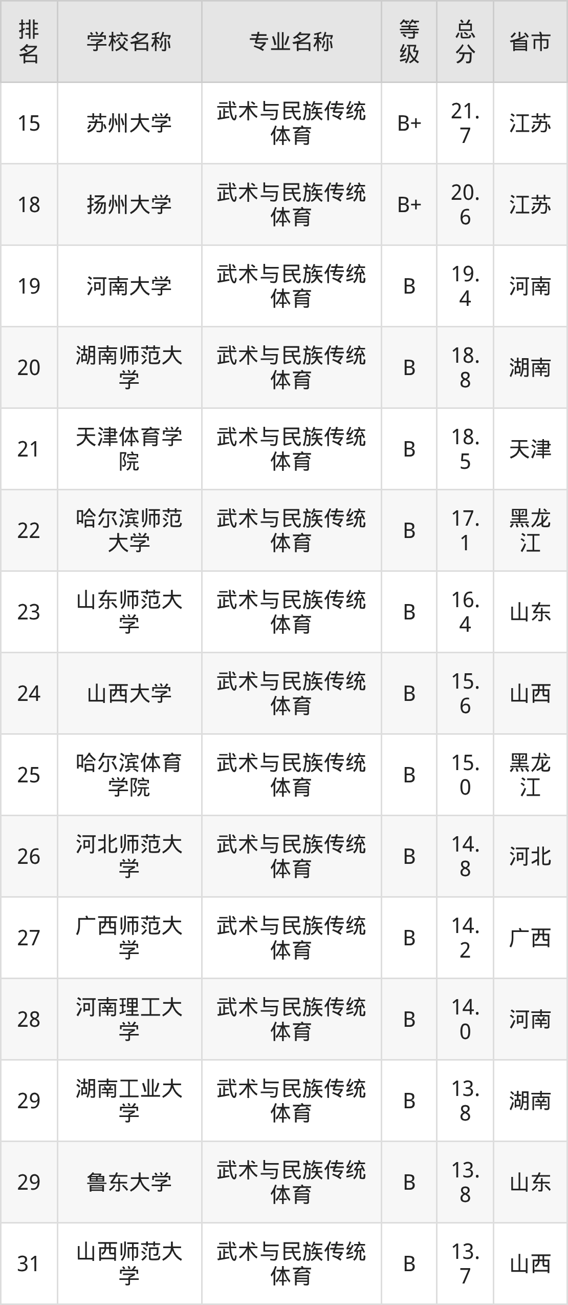 一、2025年武術(shù)與民族傳統(tǒng)體育專業(yè)全國大學(xué)排名