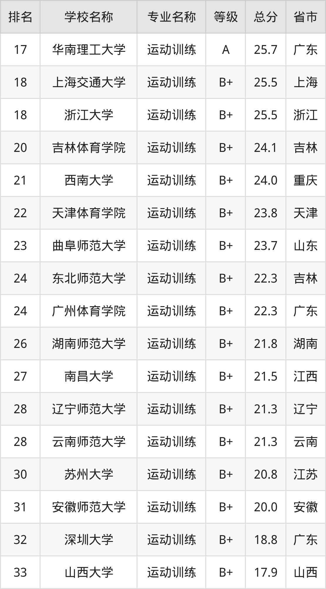 一、2025年運動訓練專業(yè)全國大學排名