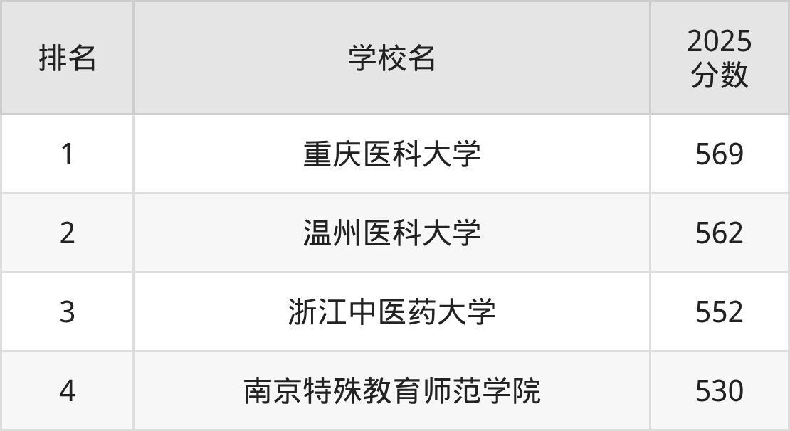 以下為全國聽力與言語康復(fù)學(xué)專業(yè)在浙江省分?jǐn)?shù)線排名前4的大學(xué)。