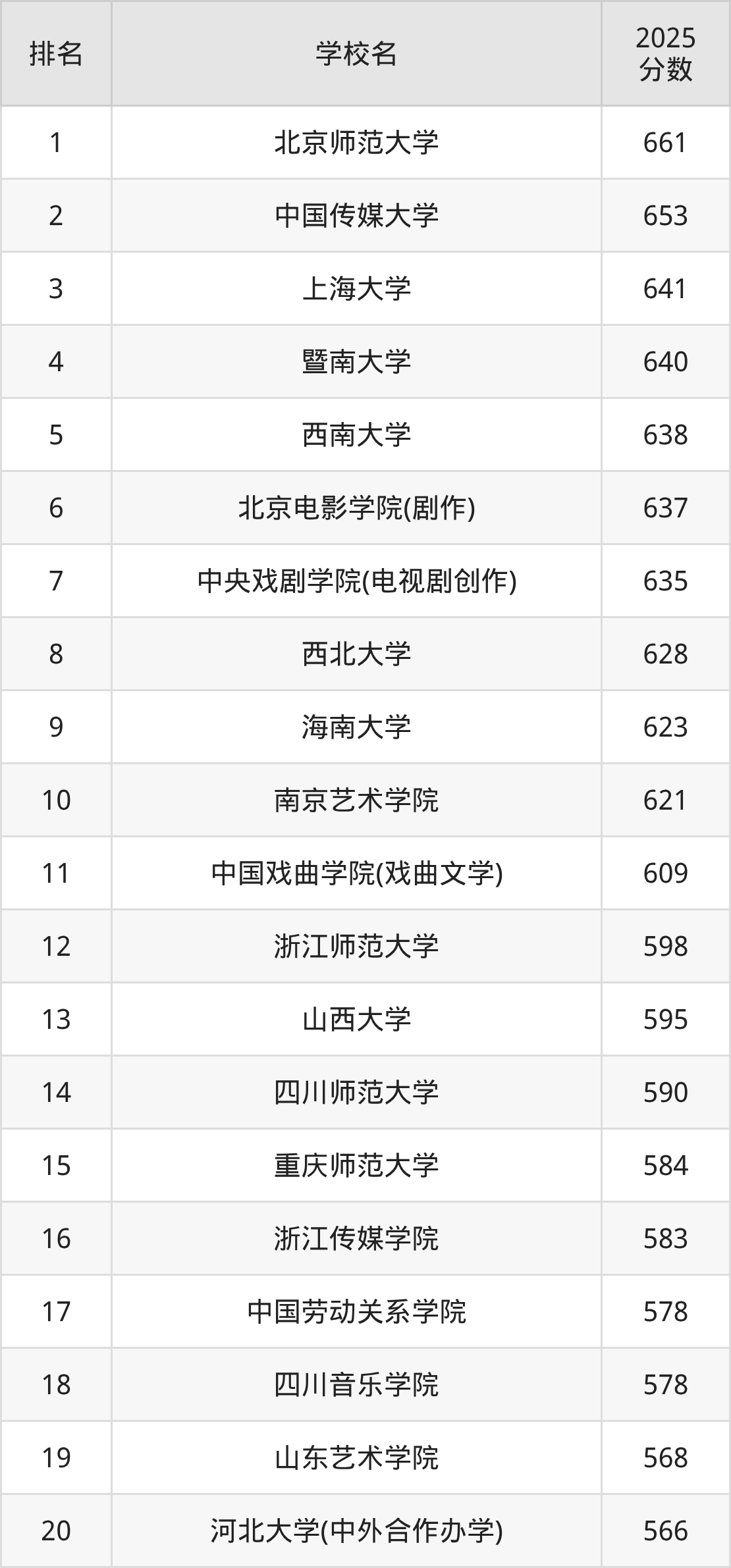 二、戲劇影視文學(xué)專業(yè)大學(xué)排名及分?jǐn)?shù)線