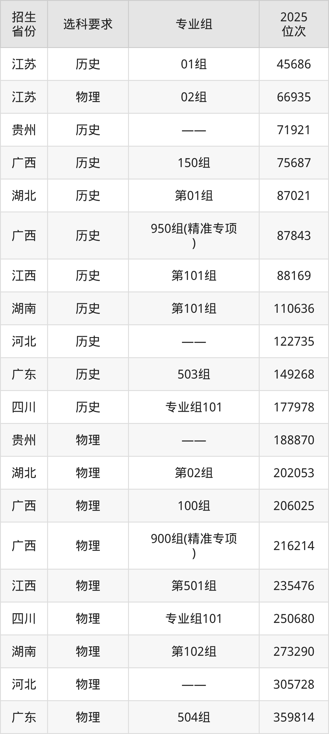 廣西建設(shè)職業(yè)技術(shù)學(xué)院2025年在全國各省的位次差異較大,最高位次是45686位(江蘇歷史類)、最低位次是636630位(山東)。各省具體位次請看下圖: