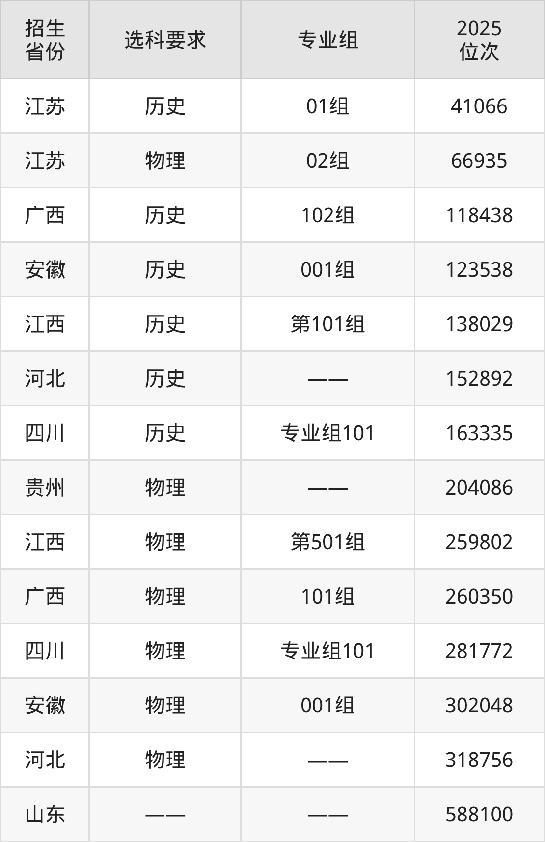 安徽礦業(yè)職業(yè)技術(shù)學(xué)院2025年在全國各省的位次差異較大,最高位次是41066位(江蘇歷史類)、最低位次是588100位(山東)。各省具體位次請看下圖: