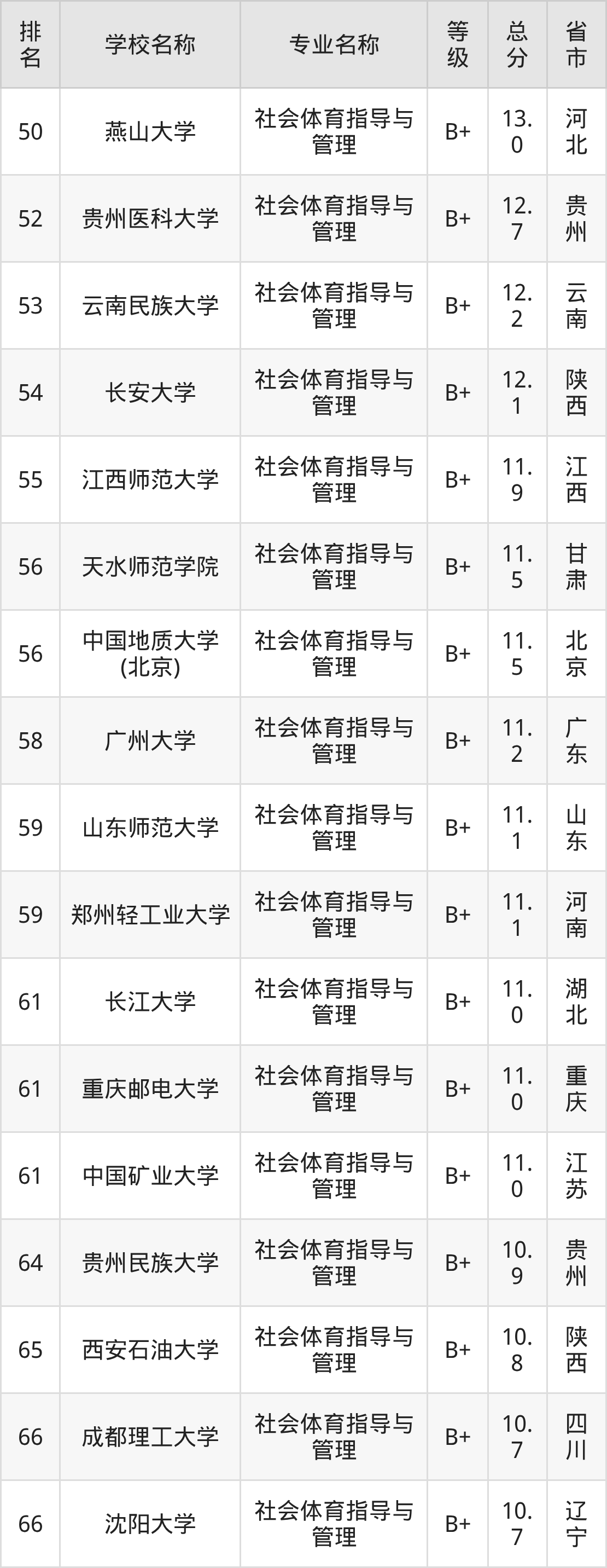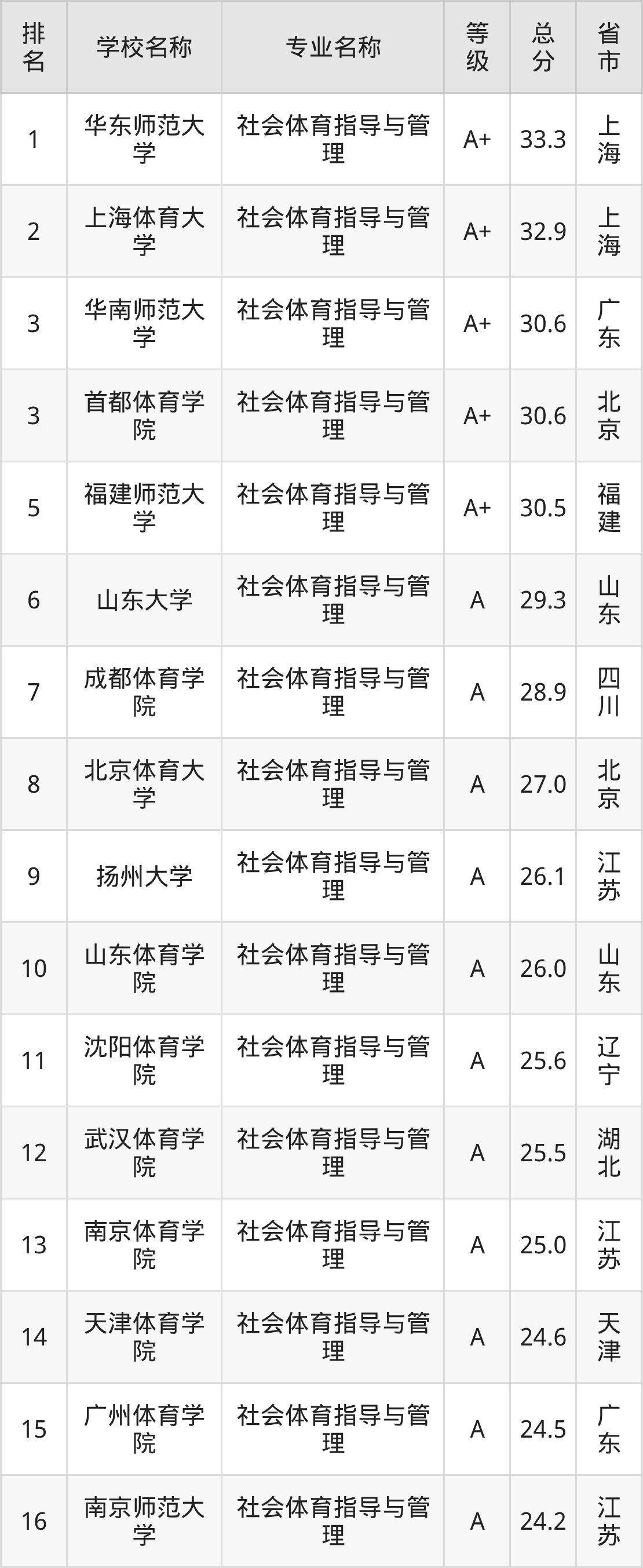 一、2025年社會(huì)體育指導(dǎo)與管理專業(yè)全國(guó)大學(xué)排名