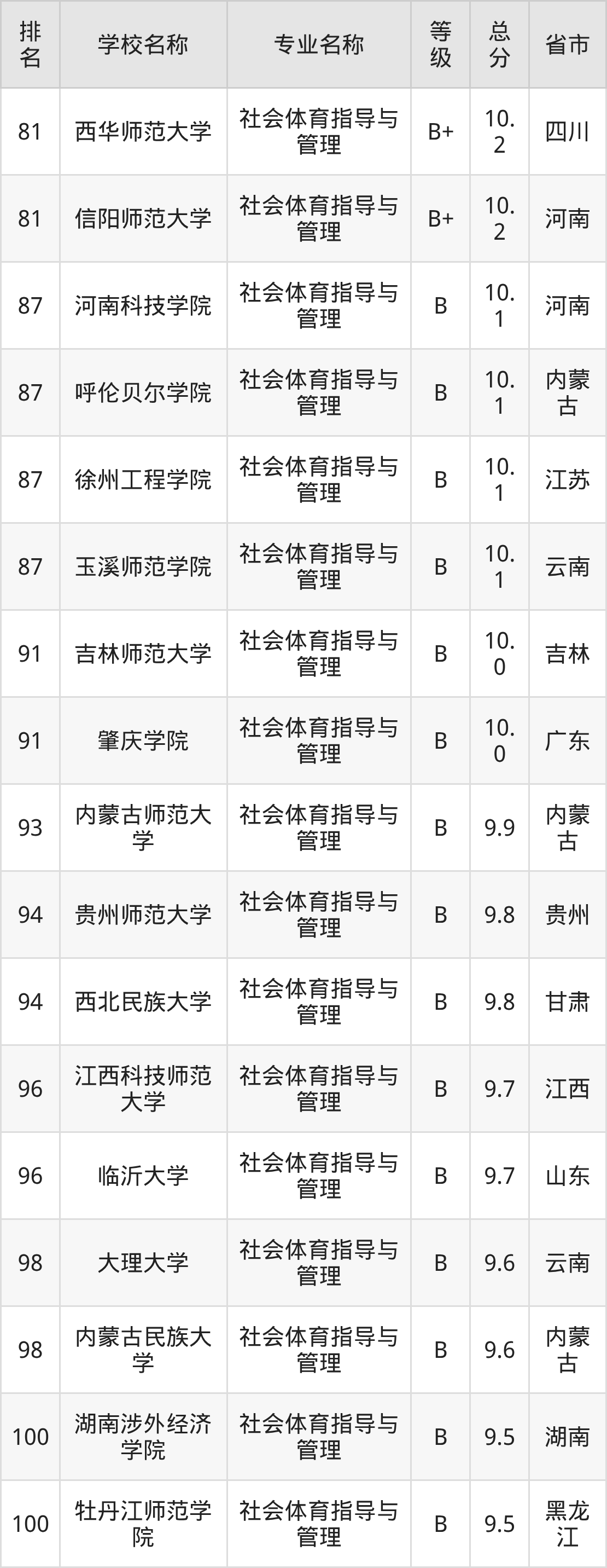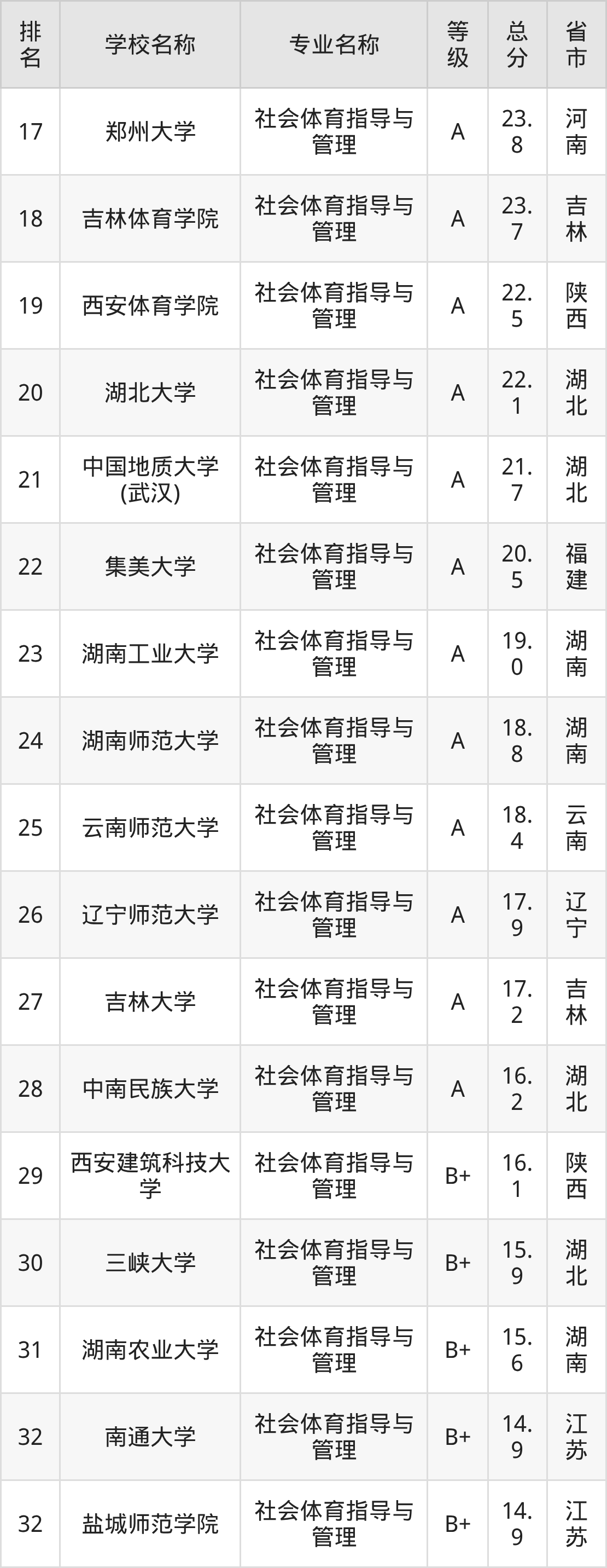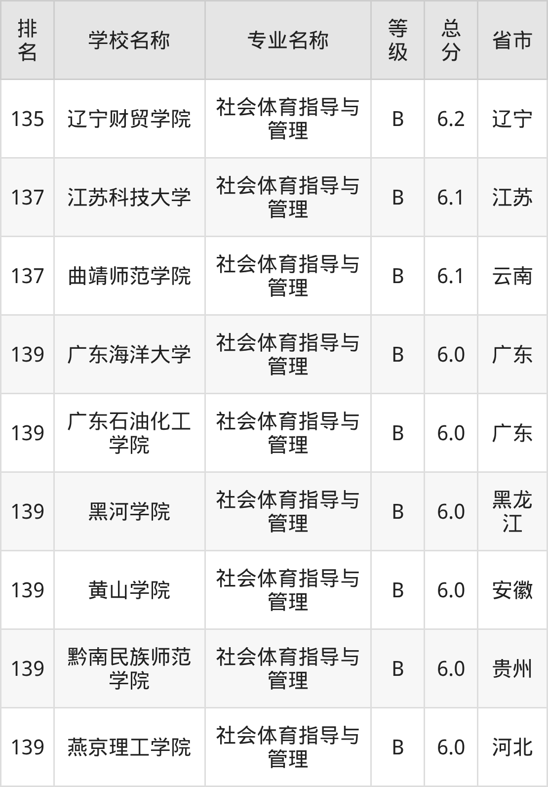 附社會(huì)體育指導(dǎo)與管理專業(yè)全國(guó)144所院校排名榜單一覽表!