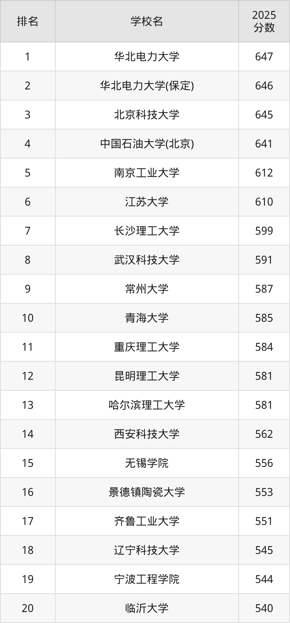 二、儲能科學與工程專業(yè)大學排名及分數(shù)線