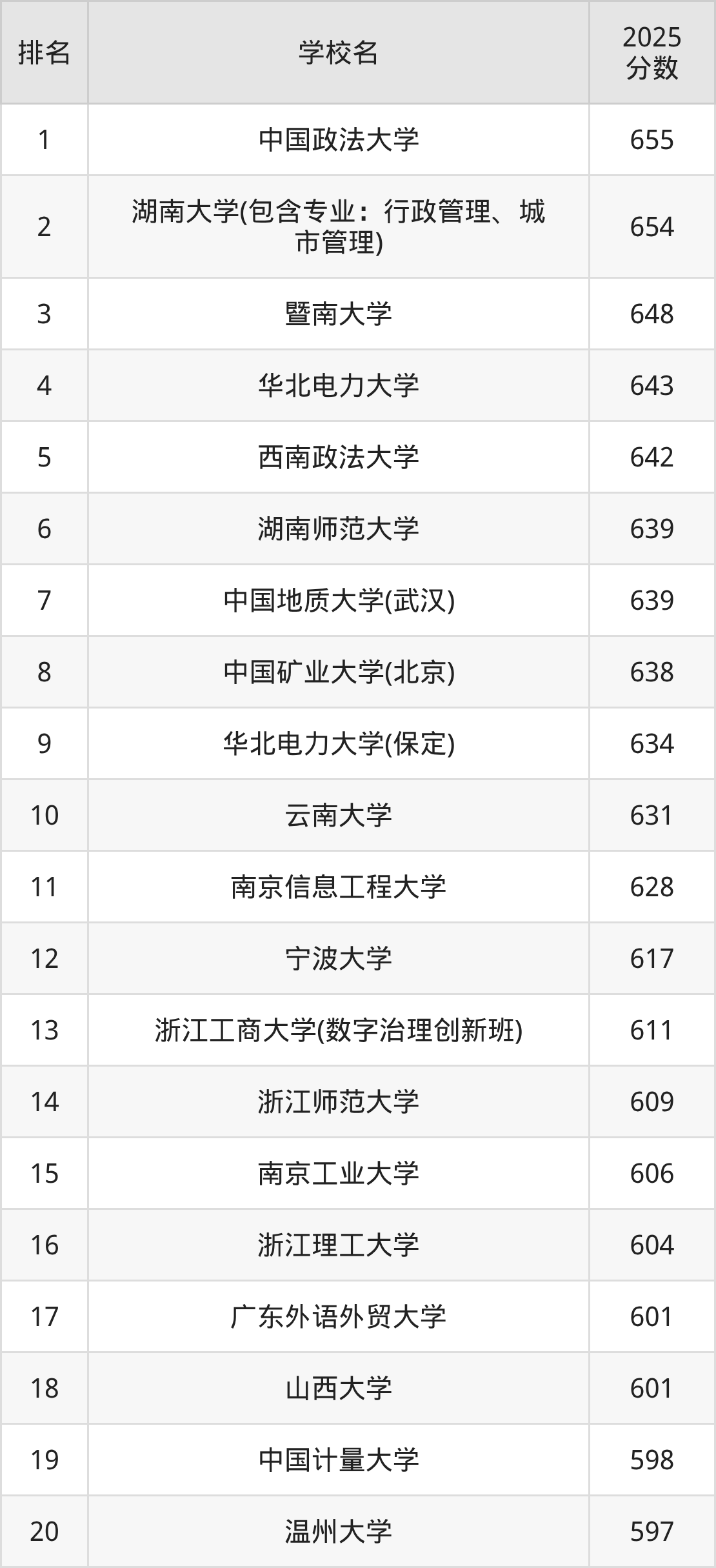 二、行政管理專業(yè)大學(xué)排名及分?jǐn)?shù)線