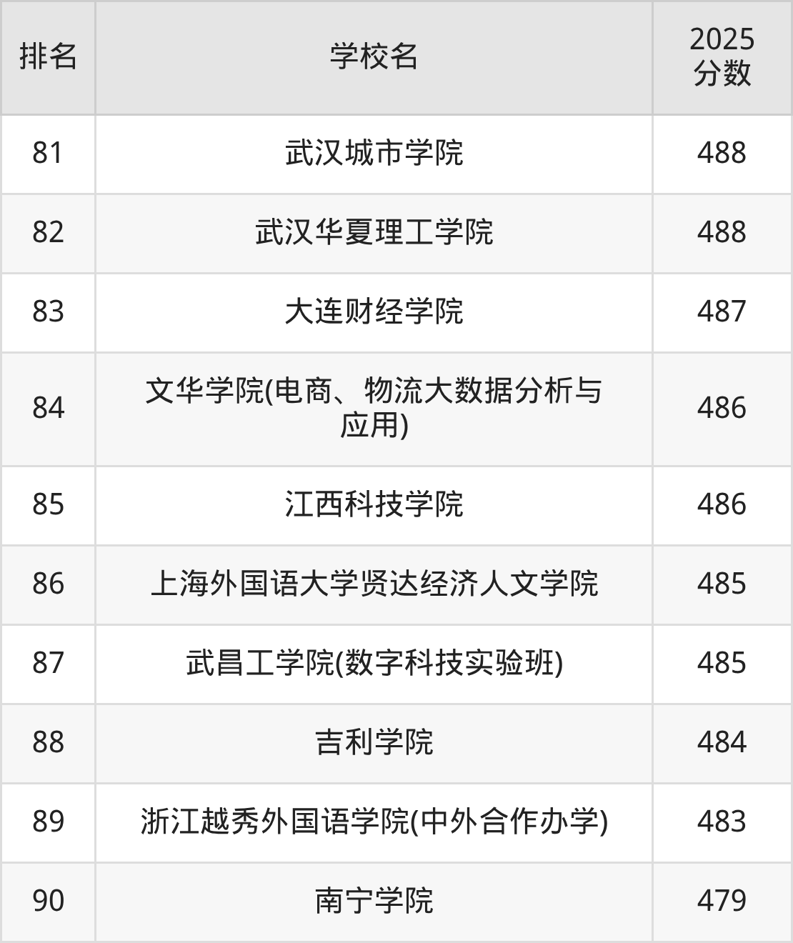 以下為全國大數(shù)據(jù)管理與應用專業(yè)在浙江省分數(shù)線排名前90的大學。