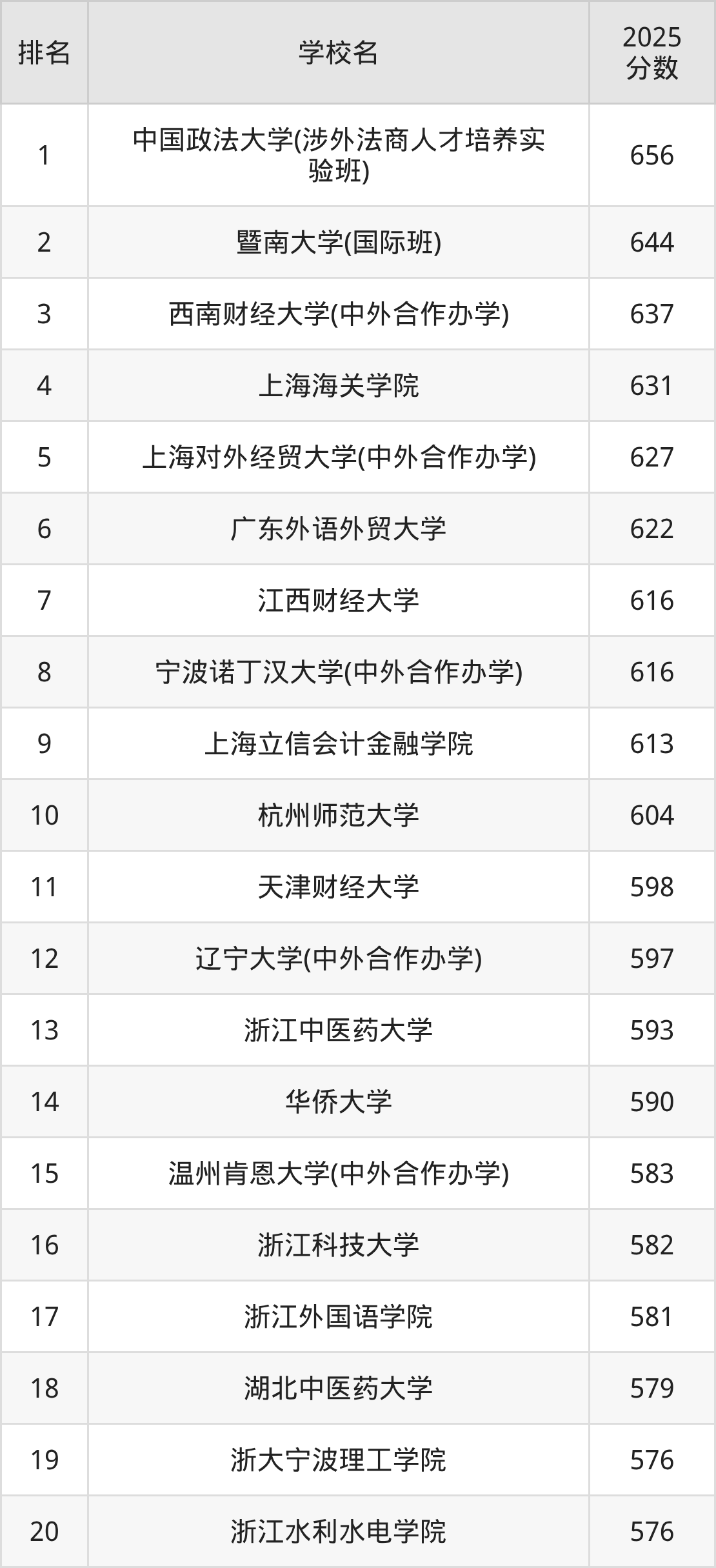 二、國際商務專業(yè)大學排名及分數(shù)線