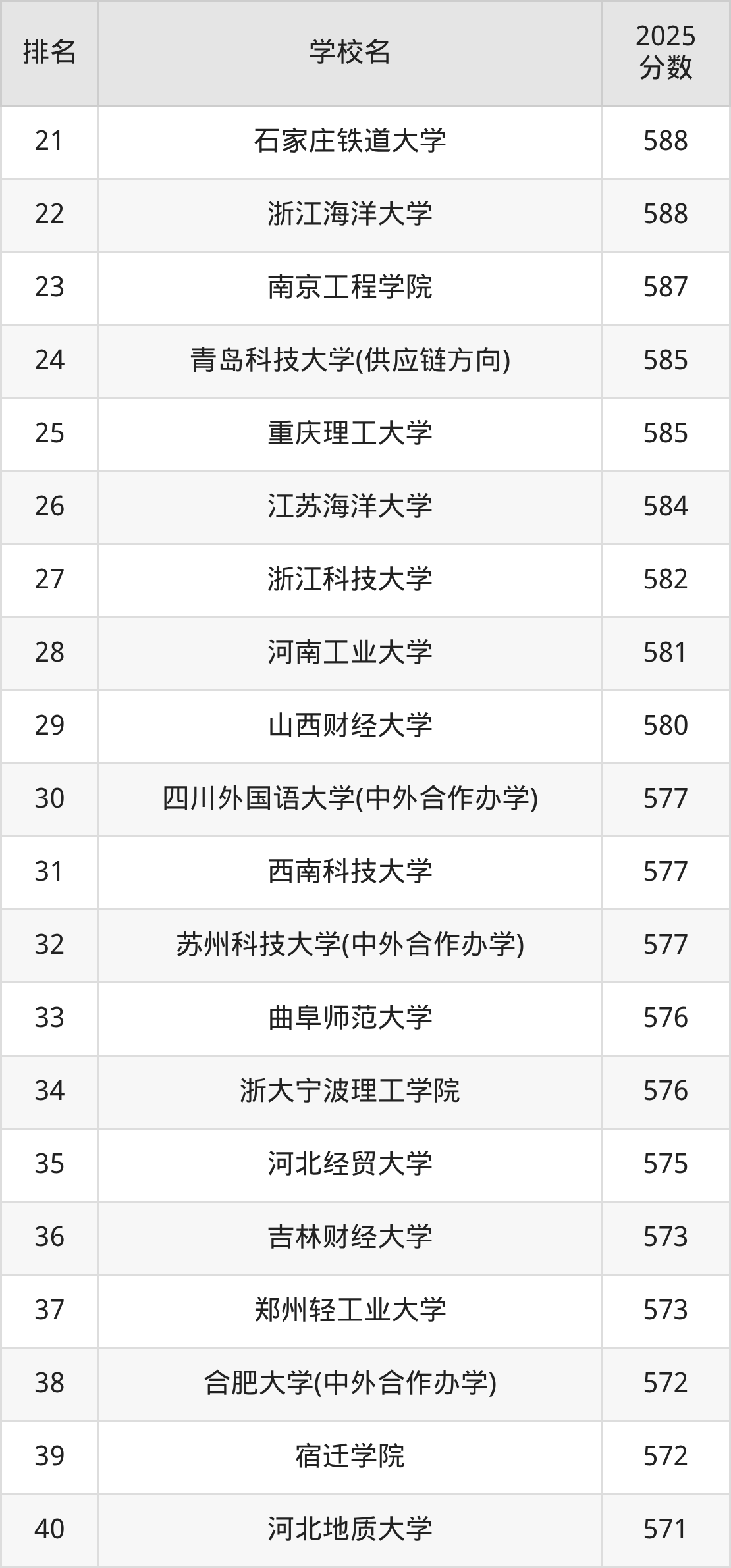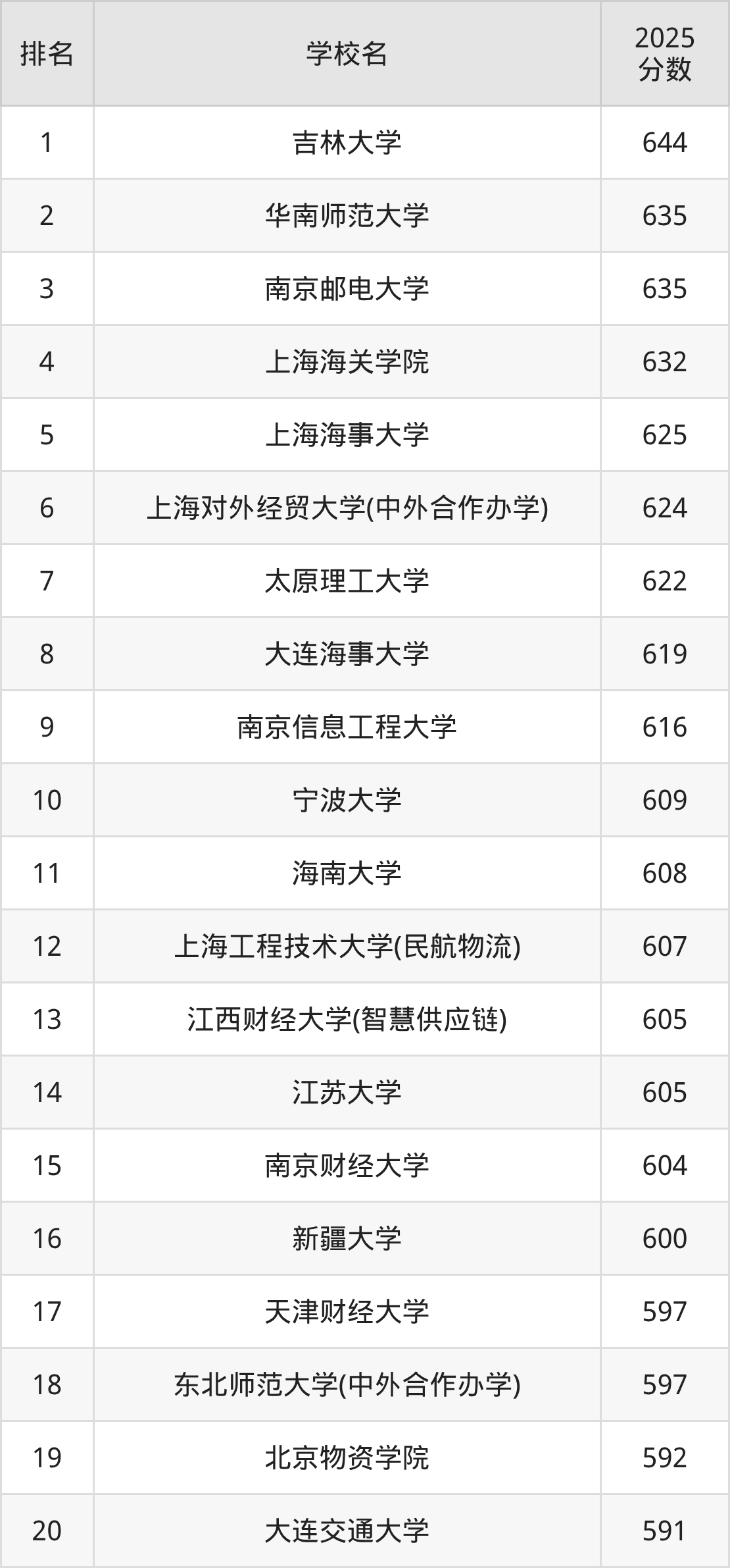 二、物流管理專業(yè)大學(xué)排名及分?jǐn)?shù)線