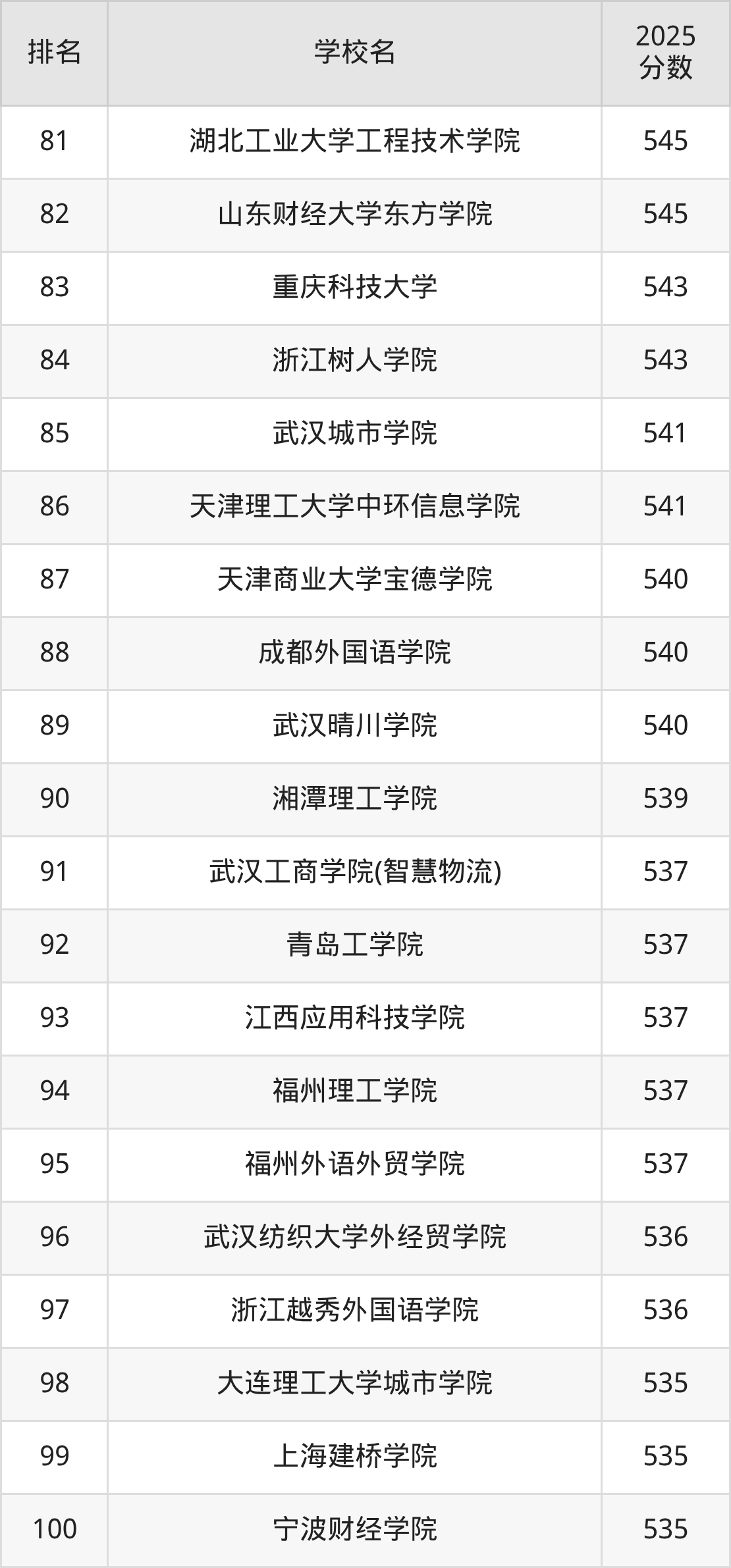 以下為全國物流管理專業(yè)在浙江省分?jǐn)?shù)線排名前100的大學(xué)。