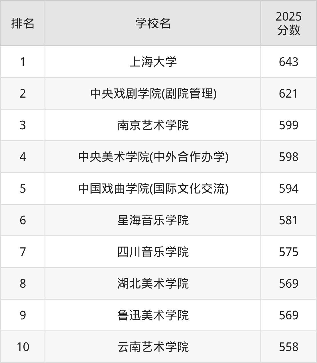 二、藝術(shù)管理專業(yè)大學(xué)排名及分?jǐn)?shù)線