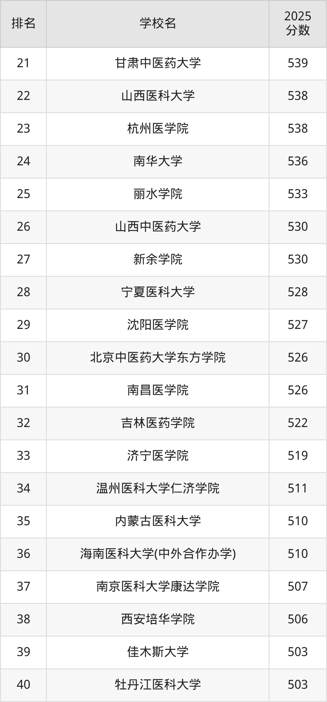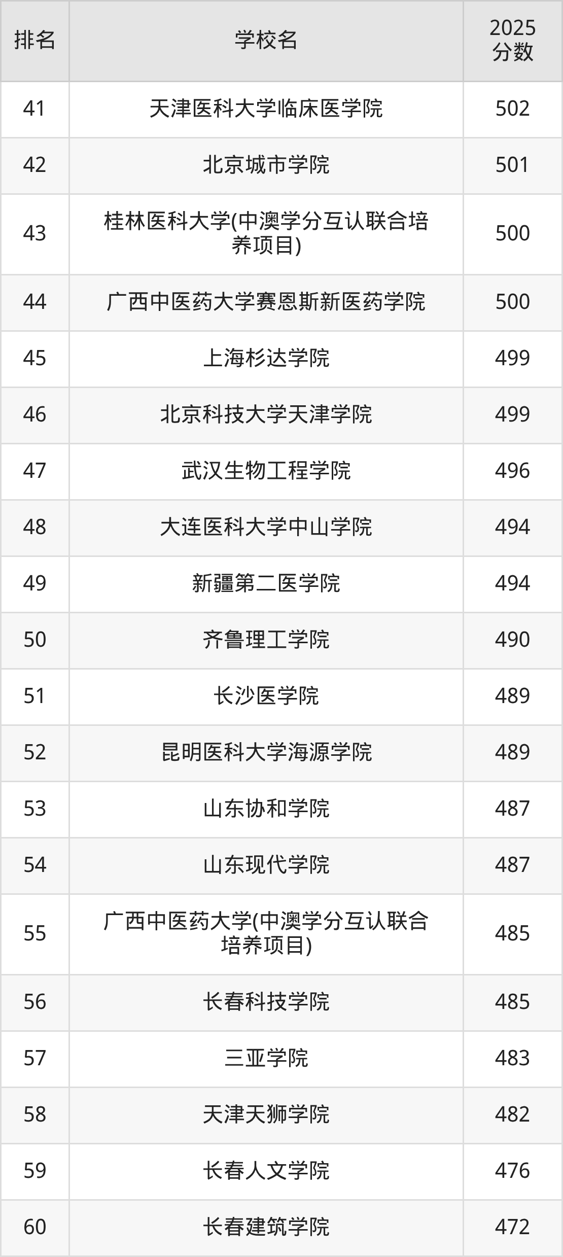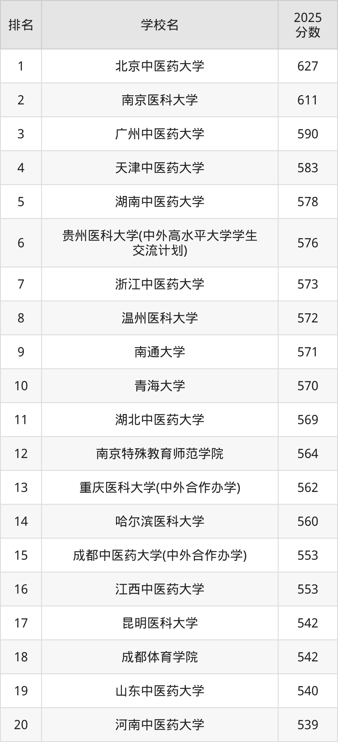 二、康復治療學專業(yè)大學排名及分數(shù)線
