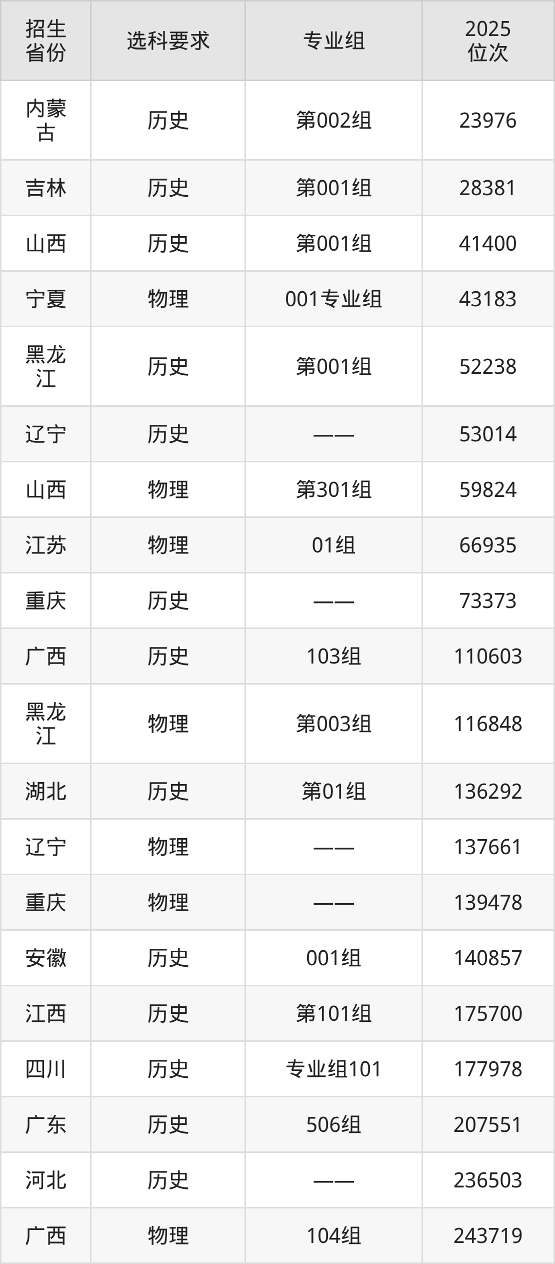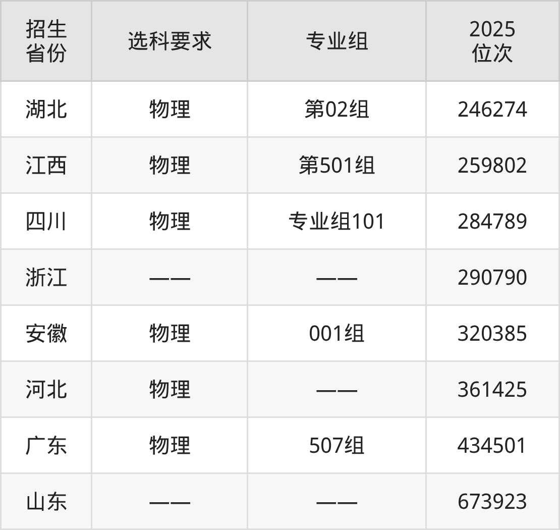 南充電影工業(yè)職業(yè)學院2025年在全國各省的位次差異較大,最高位次是23976位(內(nèi)蒙古歷史類)、最低位次是673923位(山東)。各省具體位次請看下圖:
