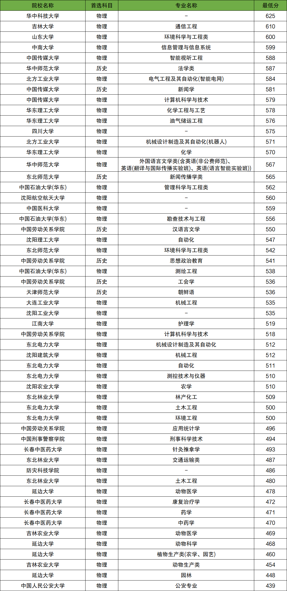 以吉林農(nóng)業(yè)大學(xué)為例,物理類各個專業(yè)最低分?jǐn)?shù)線如下: