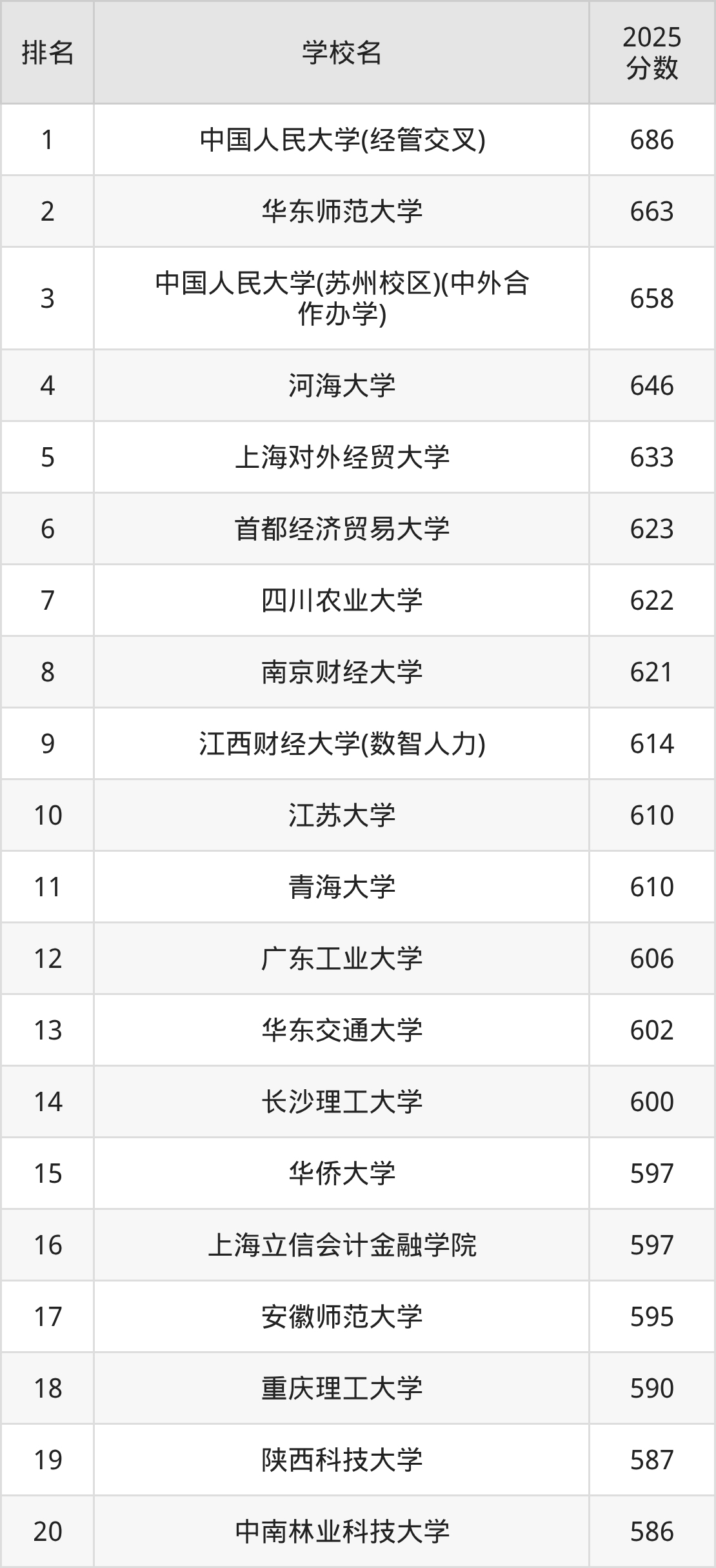 二、人力資源管理專業(yè)大學排名及分數(shù)線