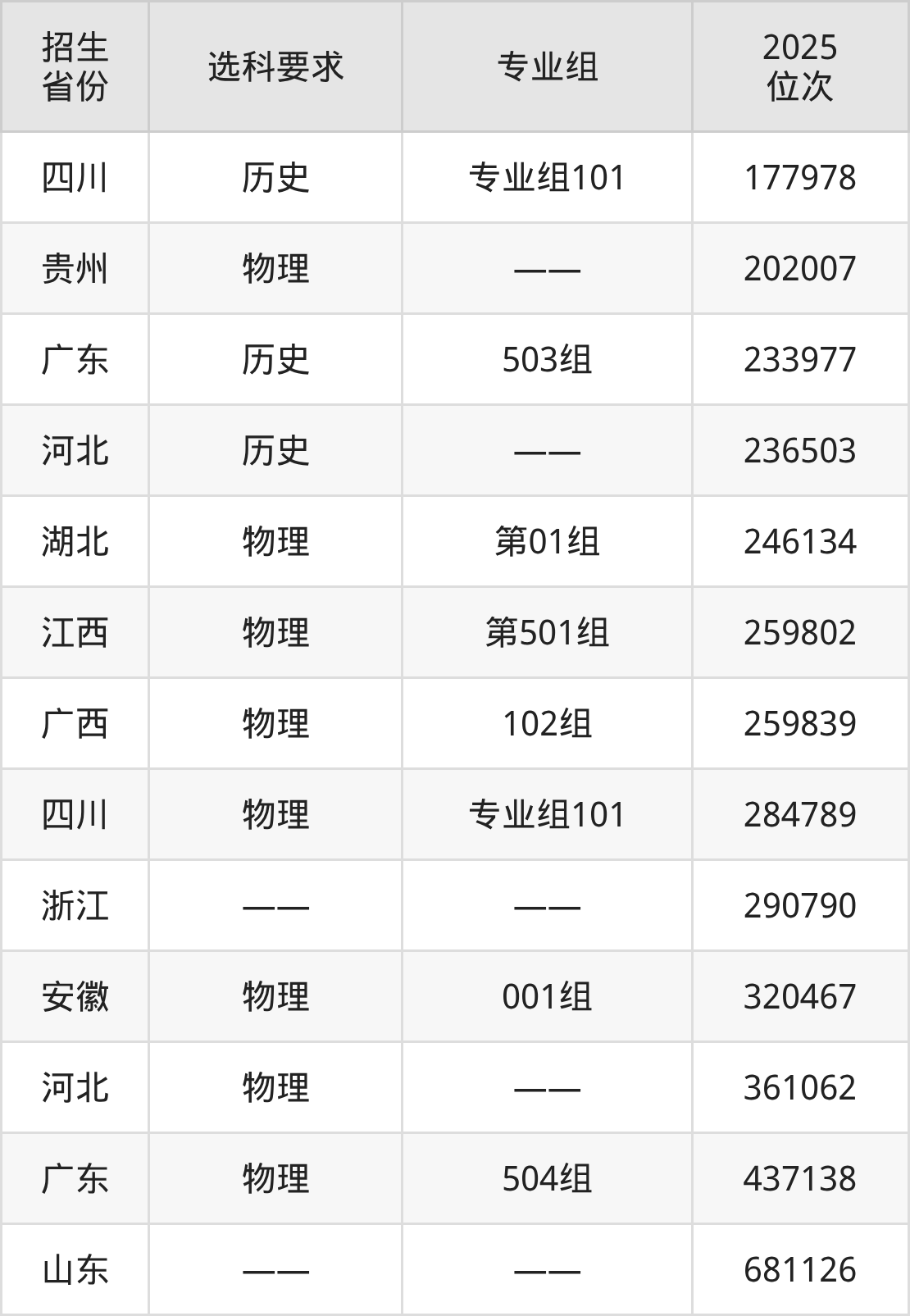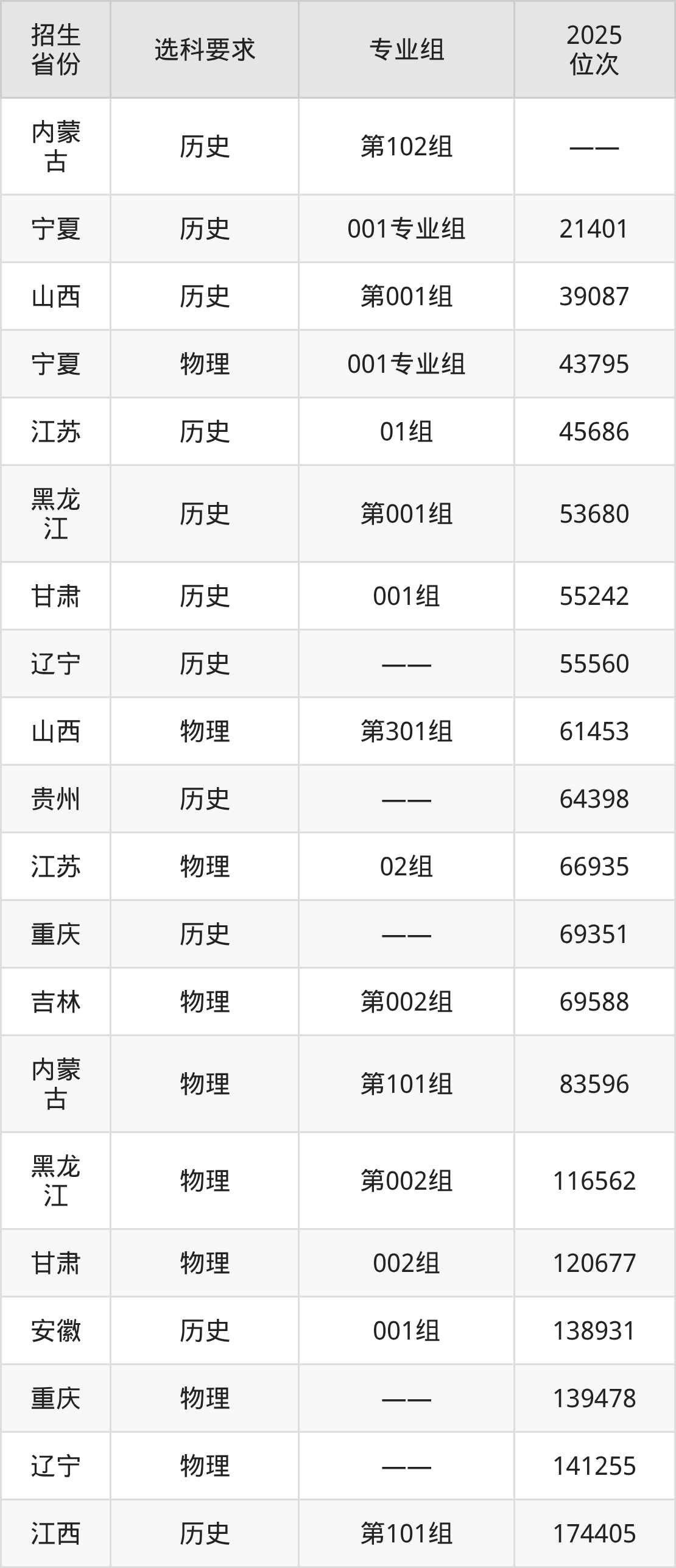 綿陽飛行職業(yè)學(xué)院2025年在全國(guó)各省的位次差異較大,最高位次是21401位(寧夏歷史類)、最低位次是681126位(山東)。各省具體位次請(qǐng)看下圖: