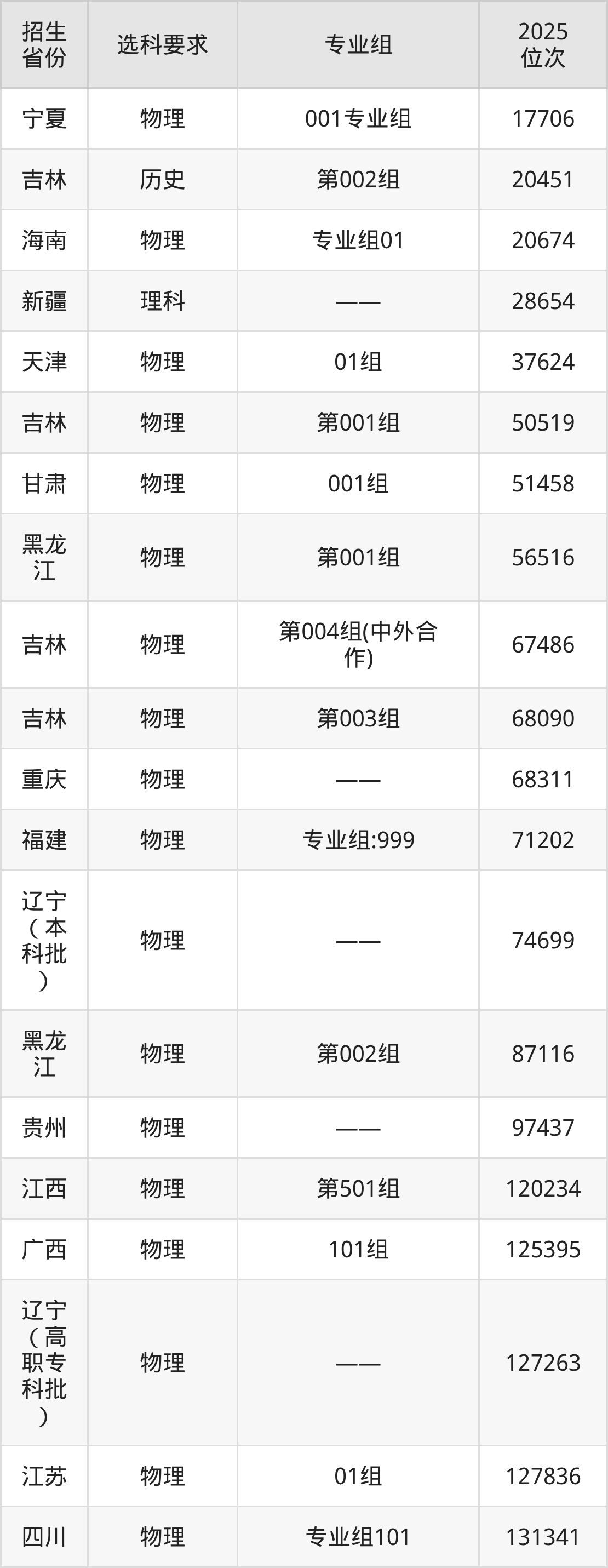 長春汽車職業(yè)技術(shù)大學(xué)2025年在全國各省的位次差異較大,最高位次是17706位(寧夏物理類)、最低位次是357387位(山東)。各省具體位次請看下圖: