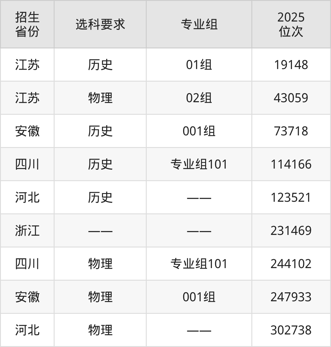 安徽工業(yè)經(jīng)濟職業(yè)技術(shù)學院2025年在全國各省的位次差異較大,最高位次是19148位(江蘇歷史類)、最低位次是302738位(河北物理類)。各省具體位次請看下圖: