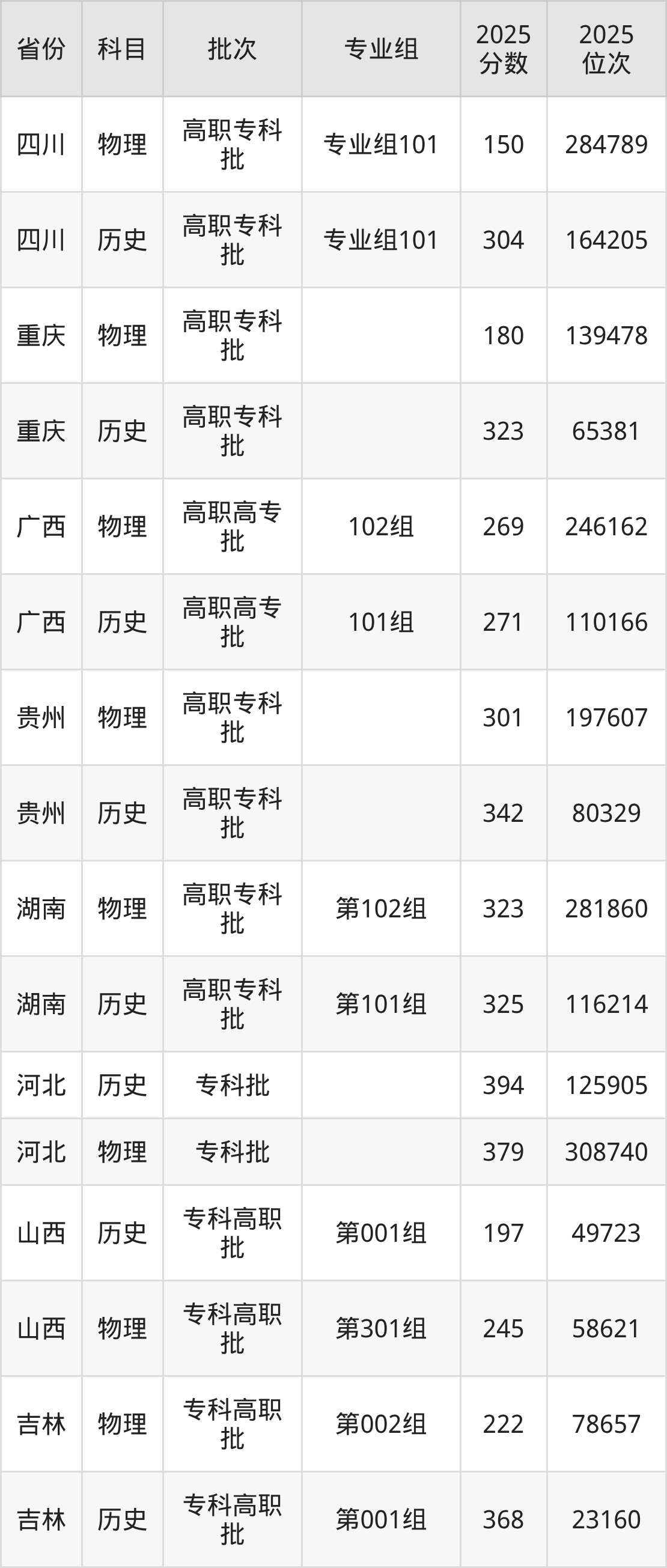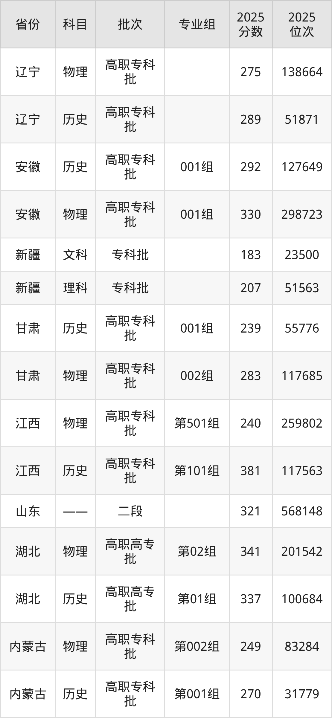普通類專科物理類最低240分,??茪v史類最低381分
