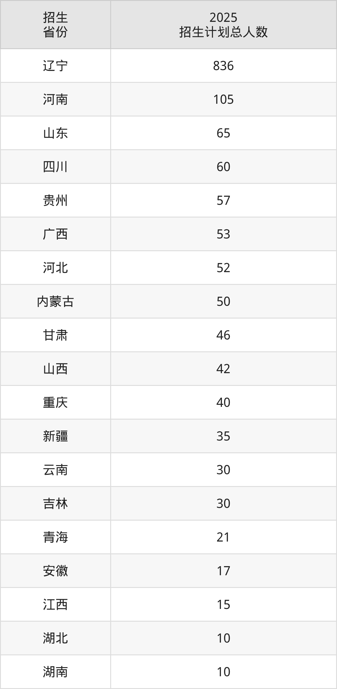 2025年鐵嶺師范高等??茖W(xué)校面向全國19個省市開展??普猩?;招生專業(yè)共31個,招生人數(shù)共1574人。2025年在遼寧省招生計劃總?cè)藬?shù)是836人,其中,鐵嶺師范高等??茖W(xué)校在遼寧省招生人數(shù)最多的是小學(xué)數(shù)學(xué)教育。鐵嶺師范高等??茖W(xué)校在各省具體招生人數(shù)情況如下表。