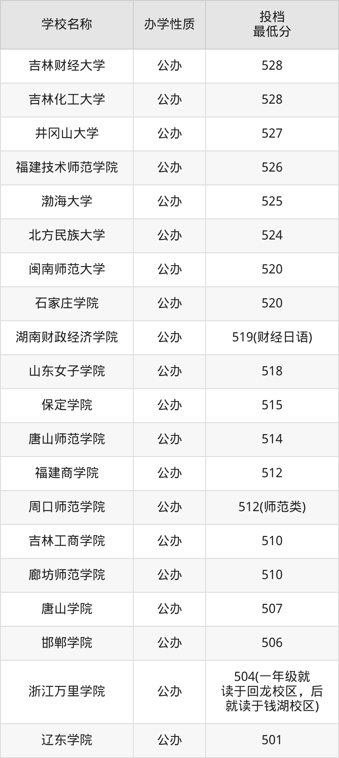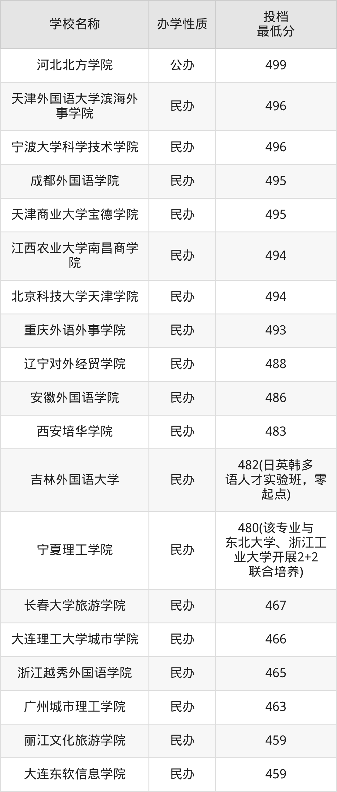 另外分數(shù)線比較低的大學還有大連東軟信息學院(459分)、廣州城市理工學院(463分)、浙江越秀外國語學院(465分)、大連理工大學城市學院(466分)、長春大學旅游學院(467分)等。